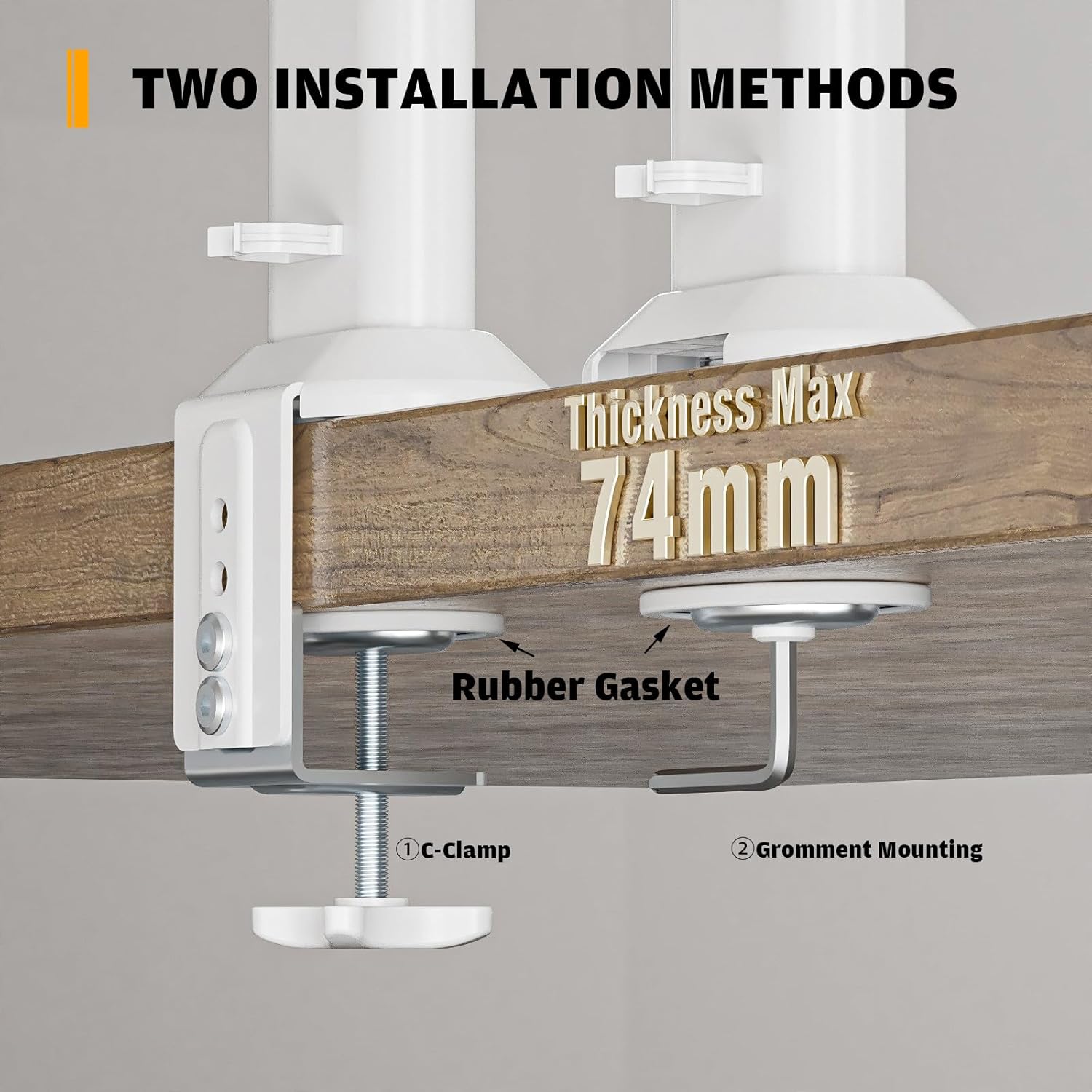 Hemudu Dual Monitor Articulating Desk Mount Arm Stand - Vertical Stack Screen Supports Two 13 to 34 Inch Computer Monitors with C Clamp White
