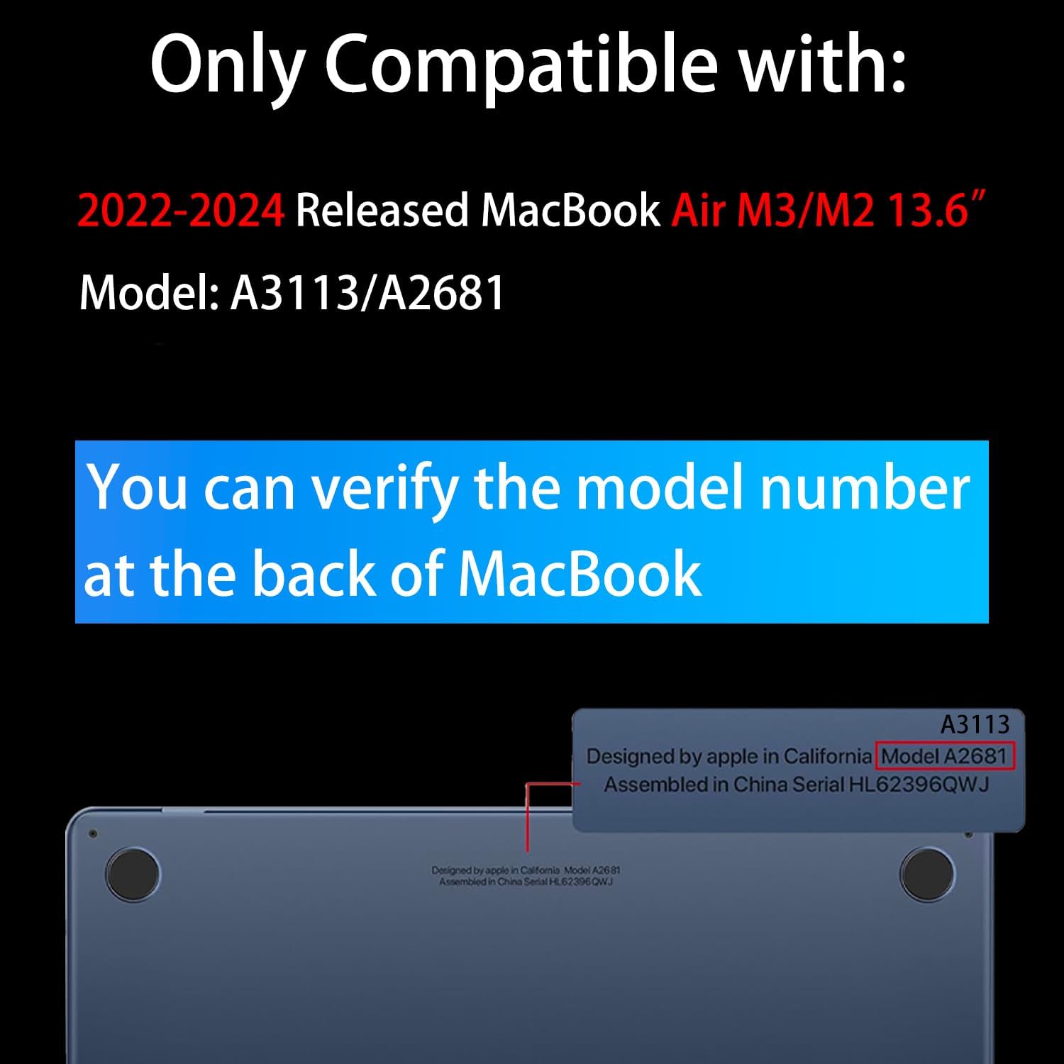 - Compatible Devices : For MacBook Air M2 M3 M4 13.6 inch A2681/A3113/A3240 (2022-2025 Released)