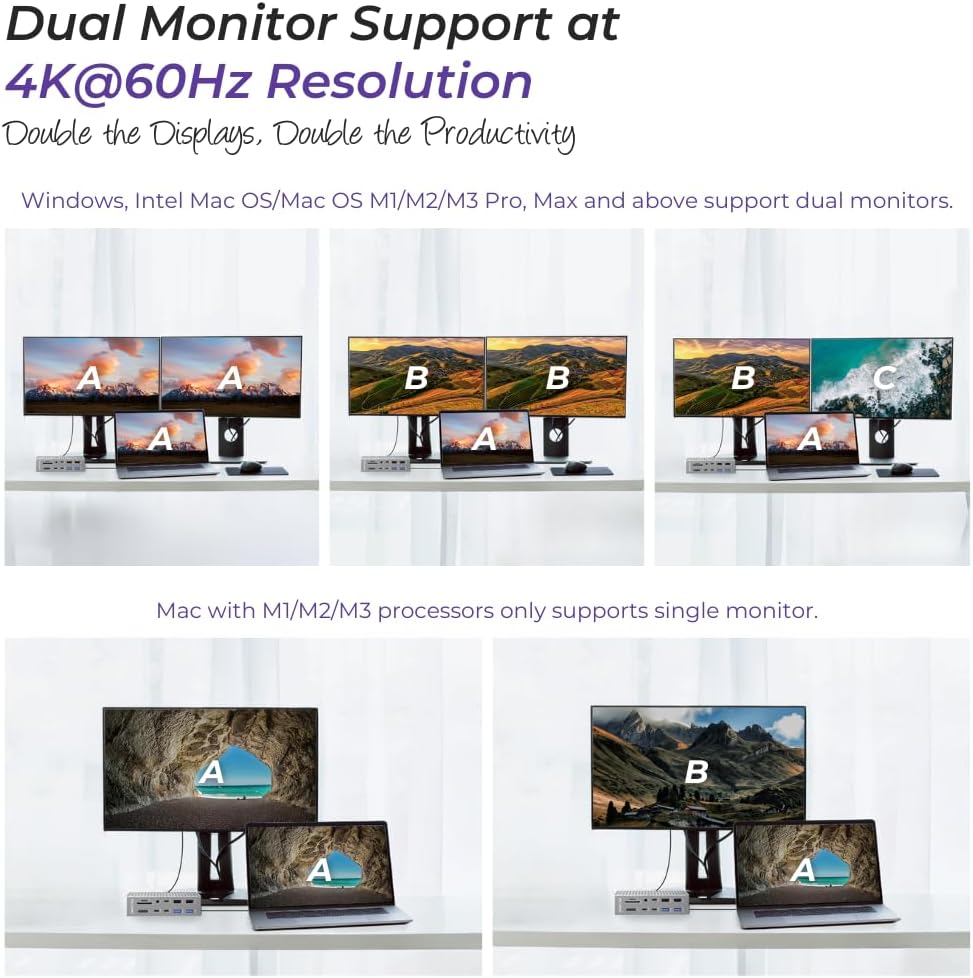Thunderbolt 4 Dock – 21 Ports, Dual 4K or Single 8K Display, 40Gbps, 90W Charging, USB-C/A Docking Station, Compatible with Windows/Mac/Chrome - Laptop Docking Station Dual Monitor