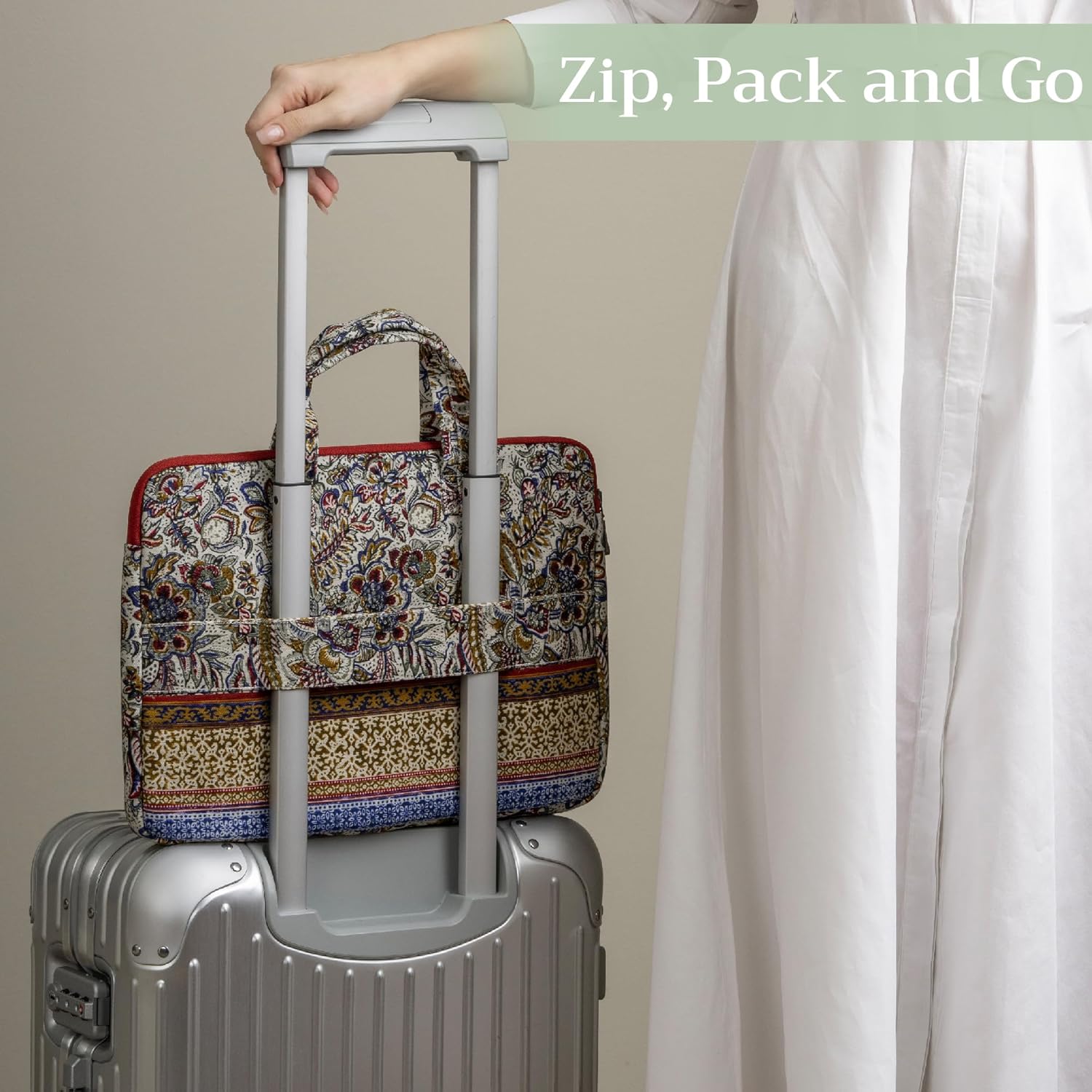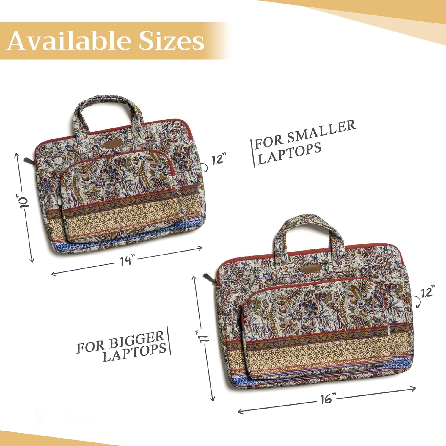 - These 100% Cotton laptop bags are made of high quality canvas fabric, which is slim and spacious bags made of solid materials and eye-catching patterns. It helps to protect laptop from dreaded knocks, spills, bumps, dings and accidental scratches.