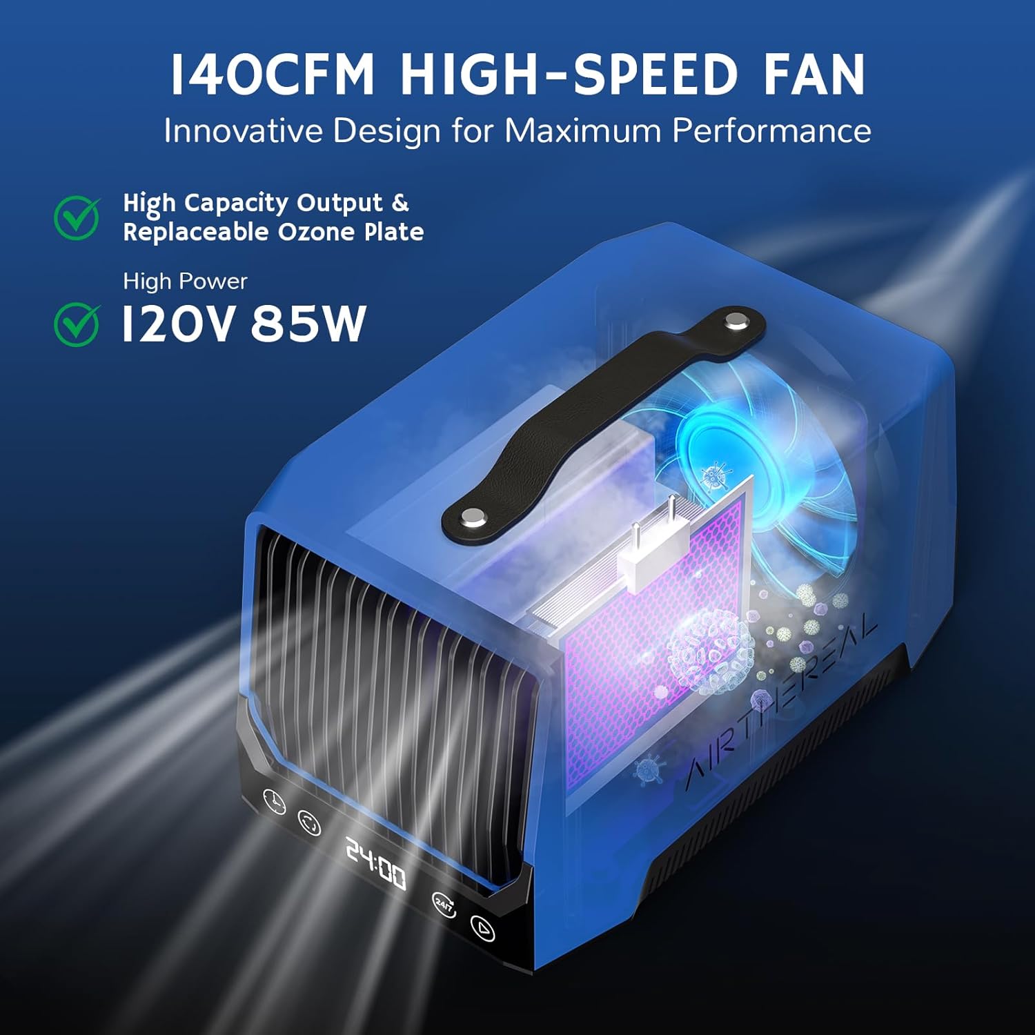 Airthereal DA25 Desktop Ozone Generator, 60,000mg/h High Capacity Odor Eliminator for Smoke, VOCs and Pet Odors, Portable Ozone Machine for Home, Garage & Car, Cover up to 5,000 sq.ft (Blue)