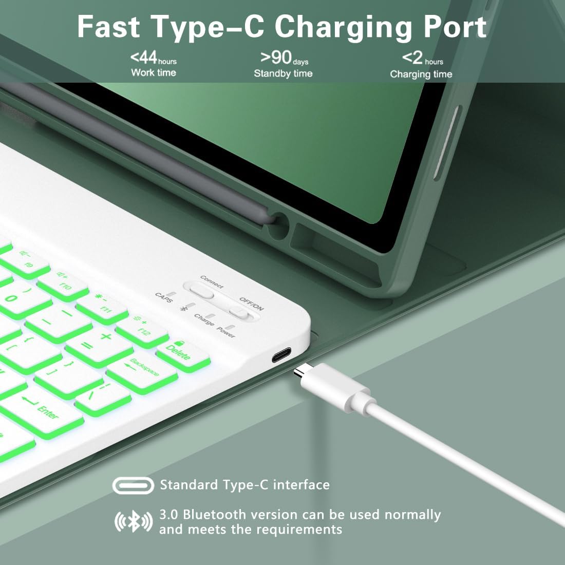 Keyboard Case for Samsung Galaxy Tab A9 Plus 5G 11 inch 2023 (SM-X210/X216/X218), 7 Color Backlit Detachable Keyboard Bluetooth, Smart Folio Cover with S Pen Holder for Galaxy Tab A9+ 11"(Dark Green)