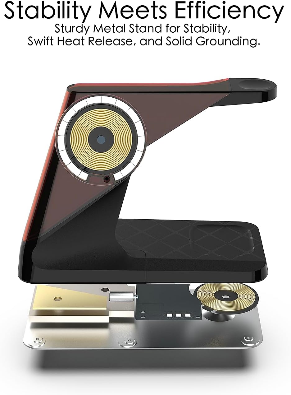 - 3-in-1 Charging Station for Apple device : Charge your iPhone, Apple Watch, and AirPods all at once. Eliminate cable clutter and keep your desk organized