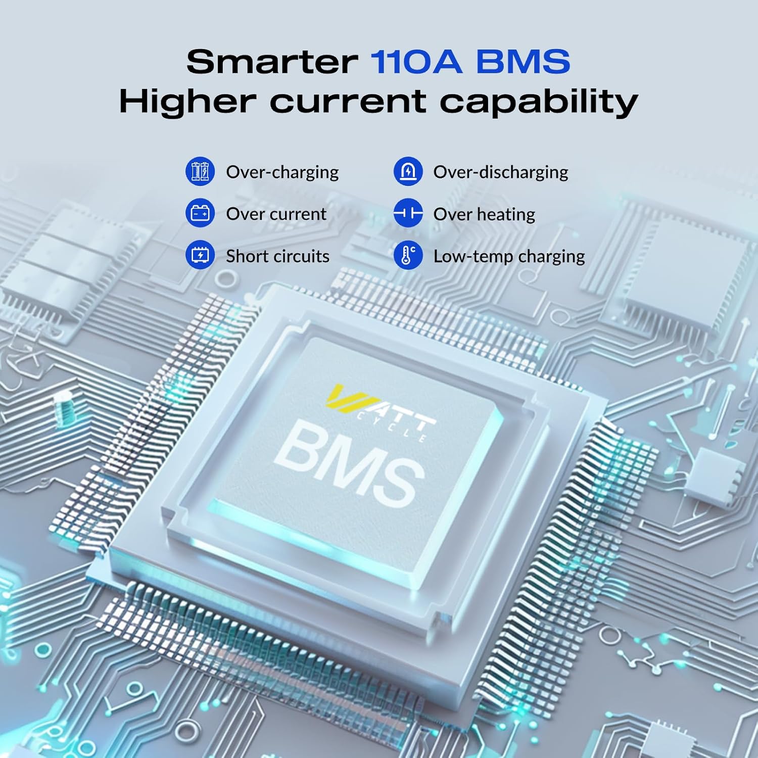 - 4PACK-Advanced 110A BMS Protection: The built-in 110A BMS safeguards 12V 100Ah LiFePO4 Pro battery cells against overcharge, deep discharge, overload, overheating, low temperatures, and short circuits. It monitors battery status, manages charging and discharging, and ensures battery efficiency through individual battery balancing.