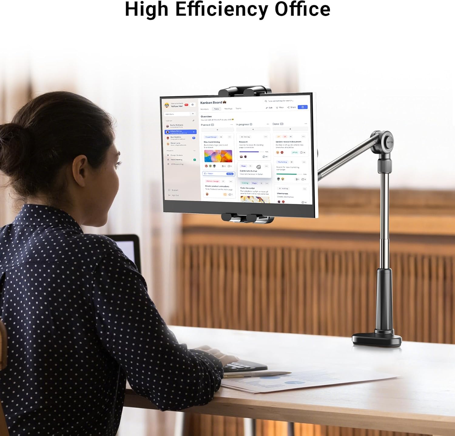 - 【Easy Adjust】Different from other monitor stands that are stiff and difficult to adjust, the arm mount can rotating to any angle with one click. It can be clamped on the nightstand, headboard, bedside, kitchen, office. It is an ideal gift for readers