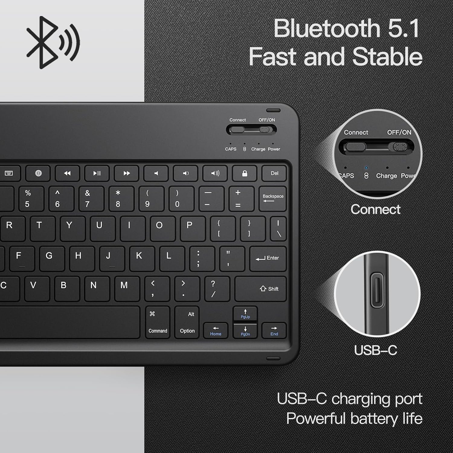 - [Magnetic & Detachable Keyboard] The keyboard with easy-to-operate keys and stable Bluetooth connection can be attached to the cover with strong magnets, instantly turning your iPad into a laptop mode to improve the efficiency of working, learning or gaming. No fear of a sudden slide and you can remove it when not in use