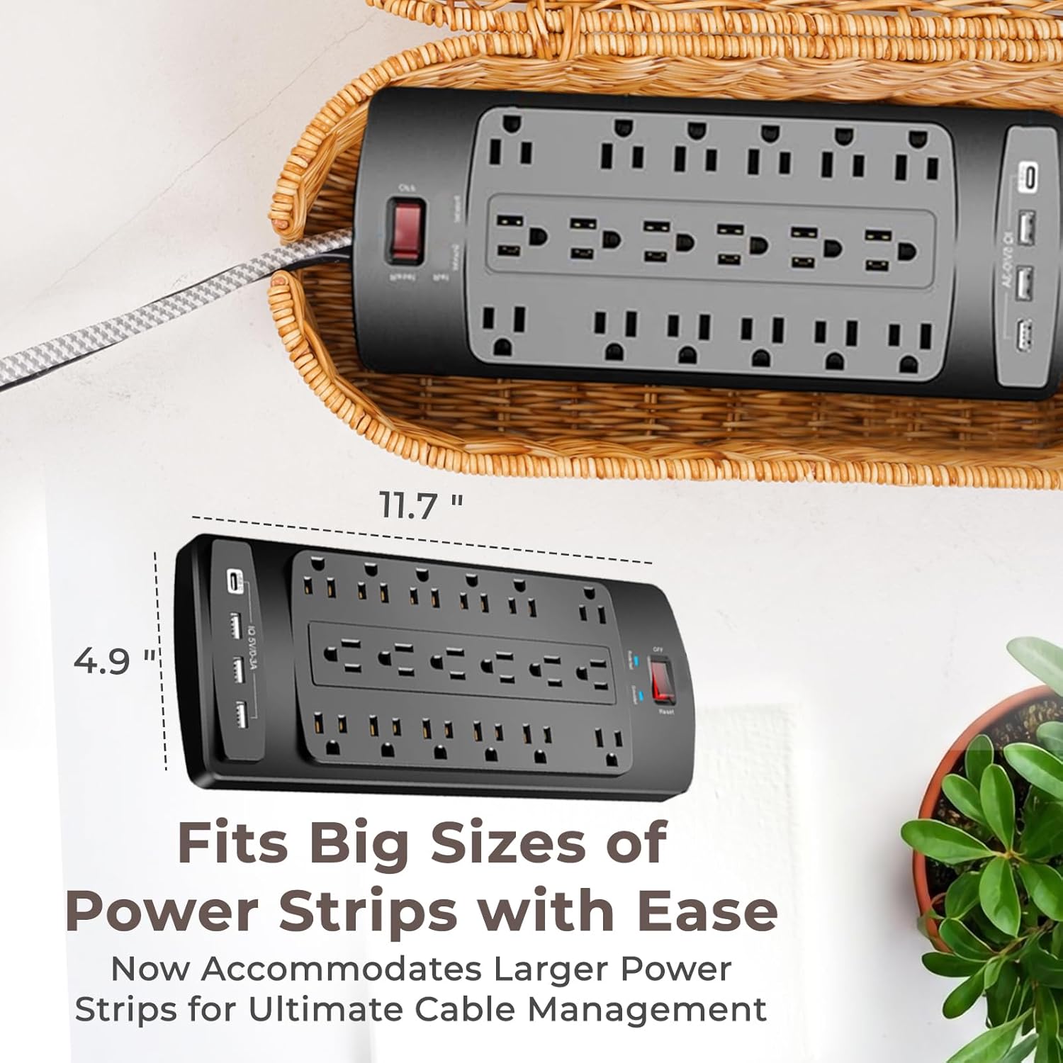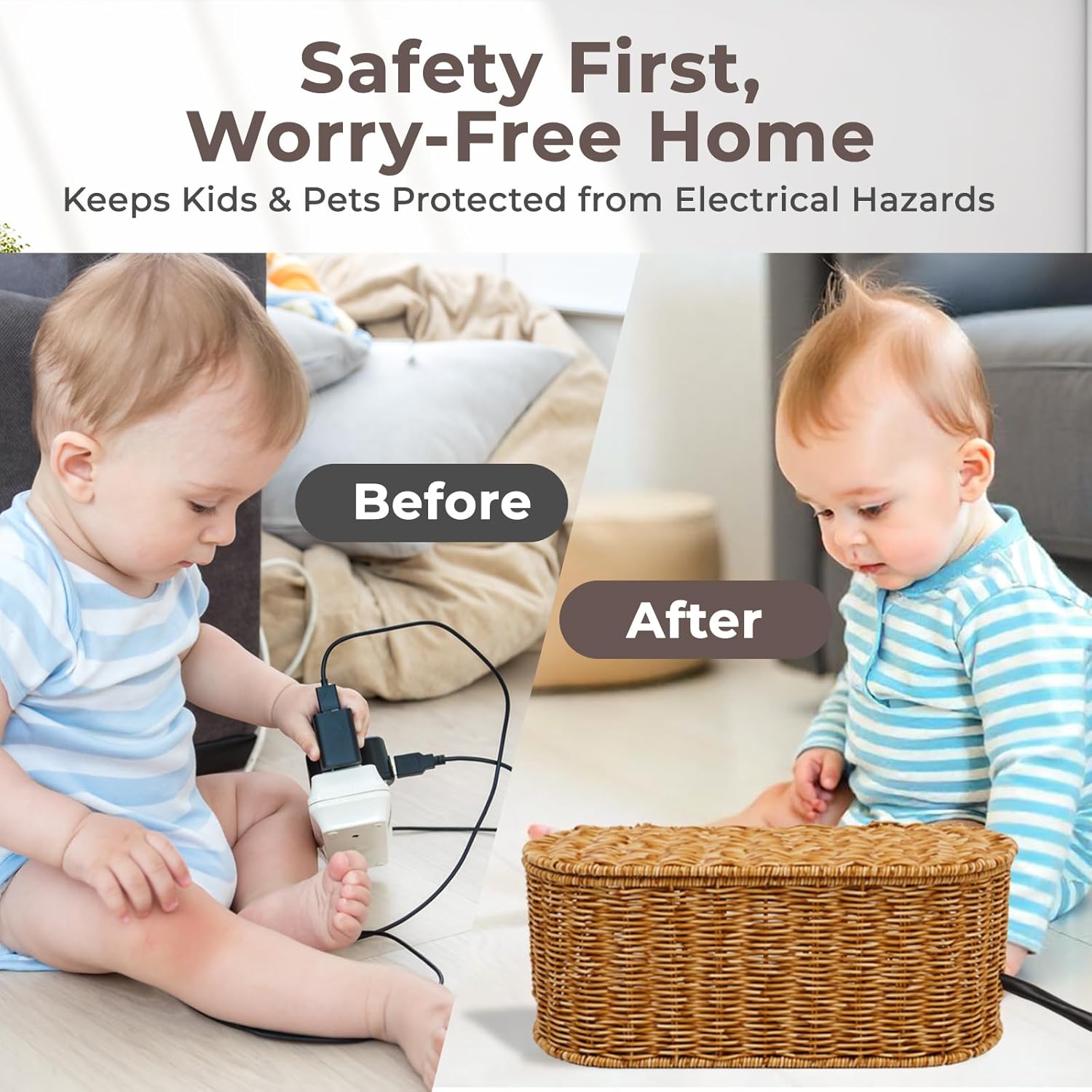 - Secure and Pet-Friendly Cable Management: Prioritize safety with our cord organizer storage, crafted to keep your little ones and furry friends safe from electrical hazards. Our baby- and pet-proof design ensures a secure home environment, offering peace of mind for all.