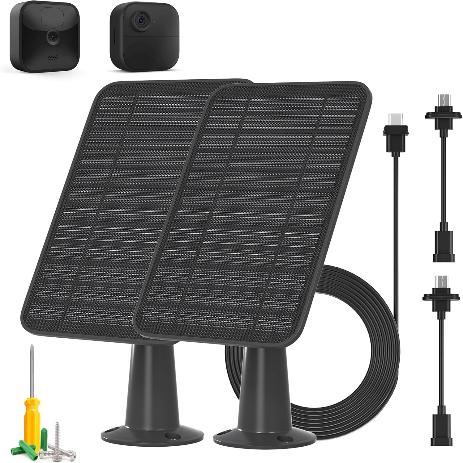 5W Solar Panel Compatible with Blink Outdoor 4(4th Gen)/Blink Outdoor(3rd Gen) XT3 & Blink XT2/XT Camera, Blink Solar Panel Charger with 13.1ft Cable Rubber Plug, IP65 Waterproof, Secure Mount, 2 Pack