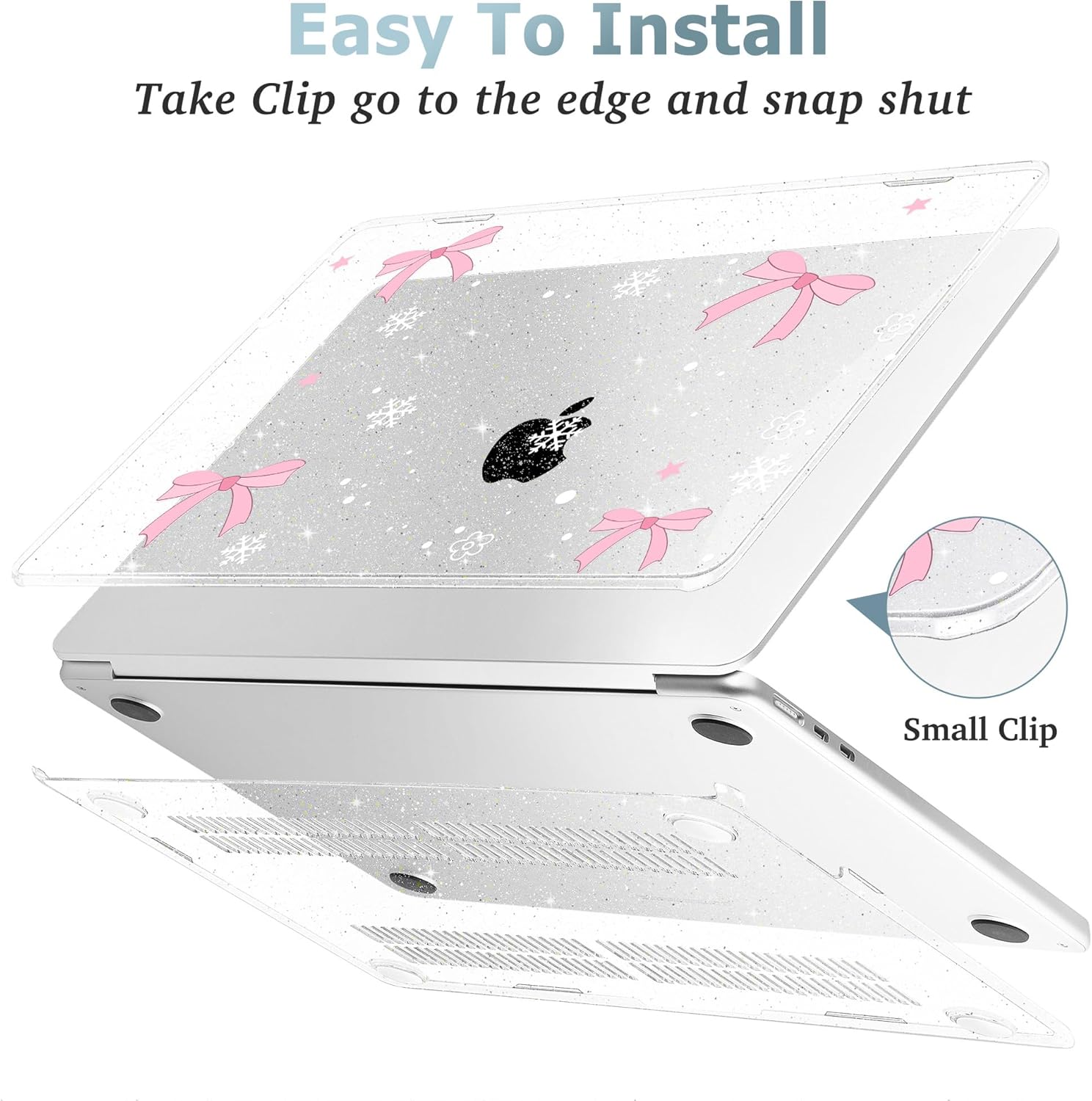 - Snap on design, Easy to install and disassemble and easy on and off, Fully vented for heat disbursement, Fully access to all ports and features, plug your charger, cable or headset without removing the case. Package Including keyboard cover, Dust plug and screen protector to protect your keyboard & screen against spills.