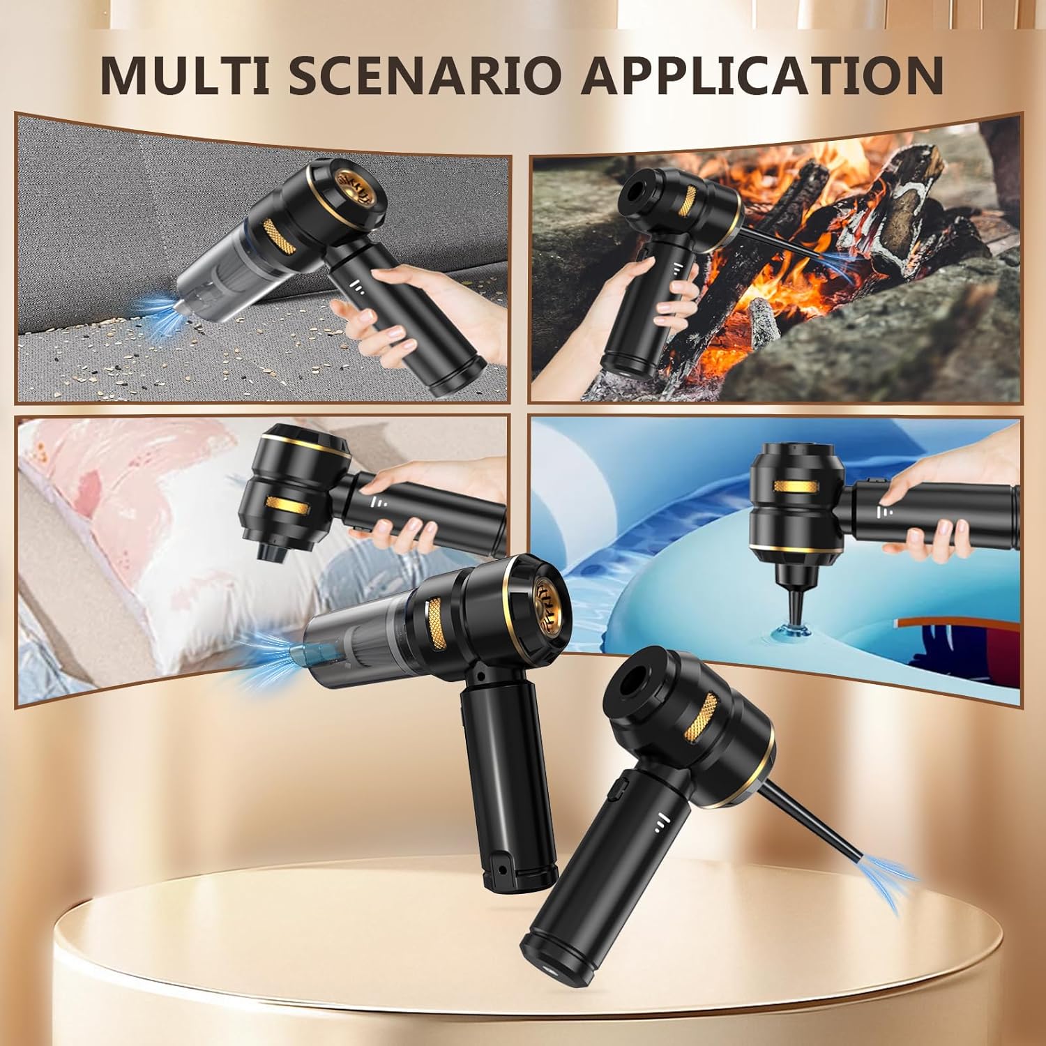 - 4-in-1 handheld vacuum: suction dust, blow debris, air extraction, and inflation. Ideal for thorough car interior cleaning, home, office, and camping. Easily handles pet hair and tight spots. A must-have for quick cleanups and inflation on the go