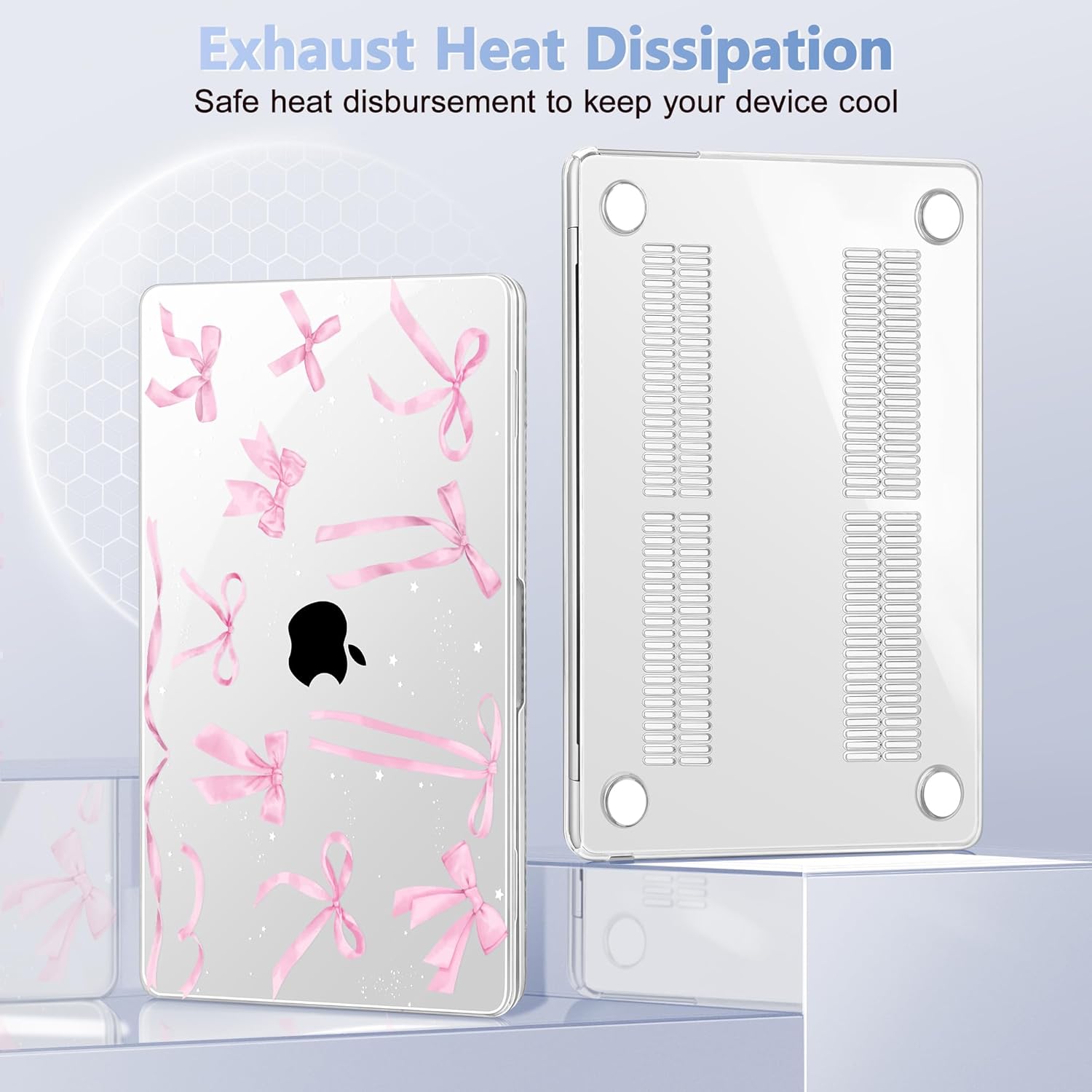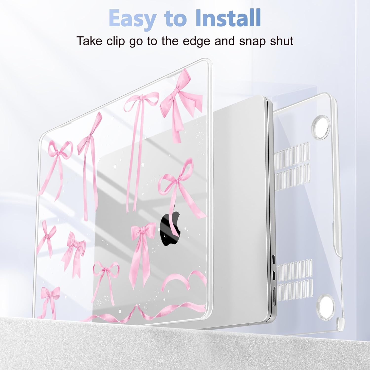 Case for MacBook Air 15 Inch 2025 2024 2023 Release M4 A3241 M3 A3114 M2 A2941, Hard Shell with Screen Protector & Keyboard Cover, Compatible with Touch ID, Bowknot