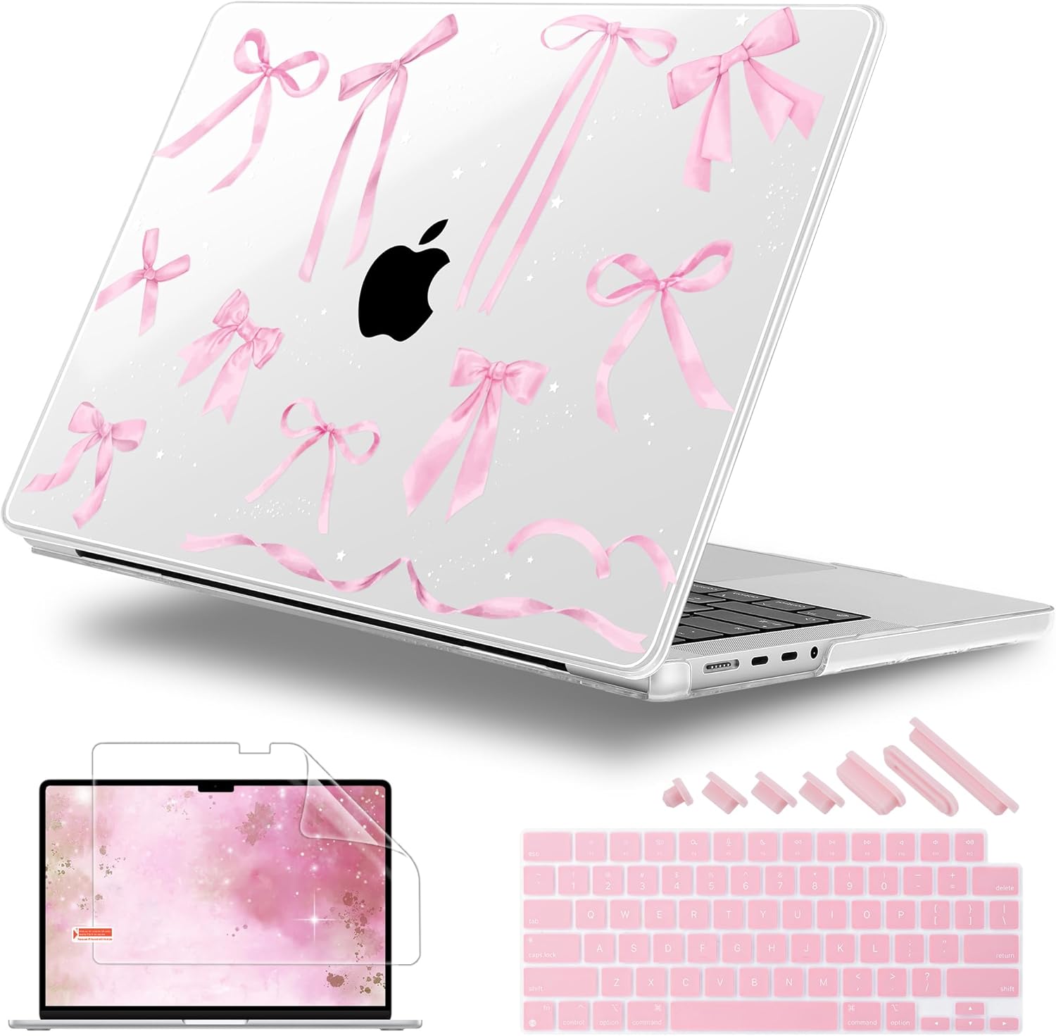 for MacBook Pro 16 inch Case 2021 2022 2023 2024 Release A3186 A3403 M4 A2991 M3 A2780 M2 A2485 M1 Pro/Max, Hard Shell Case with Screen Protector & Keyboard Cover, Bowknot