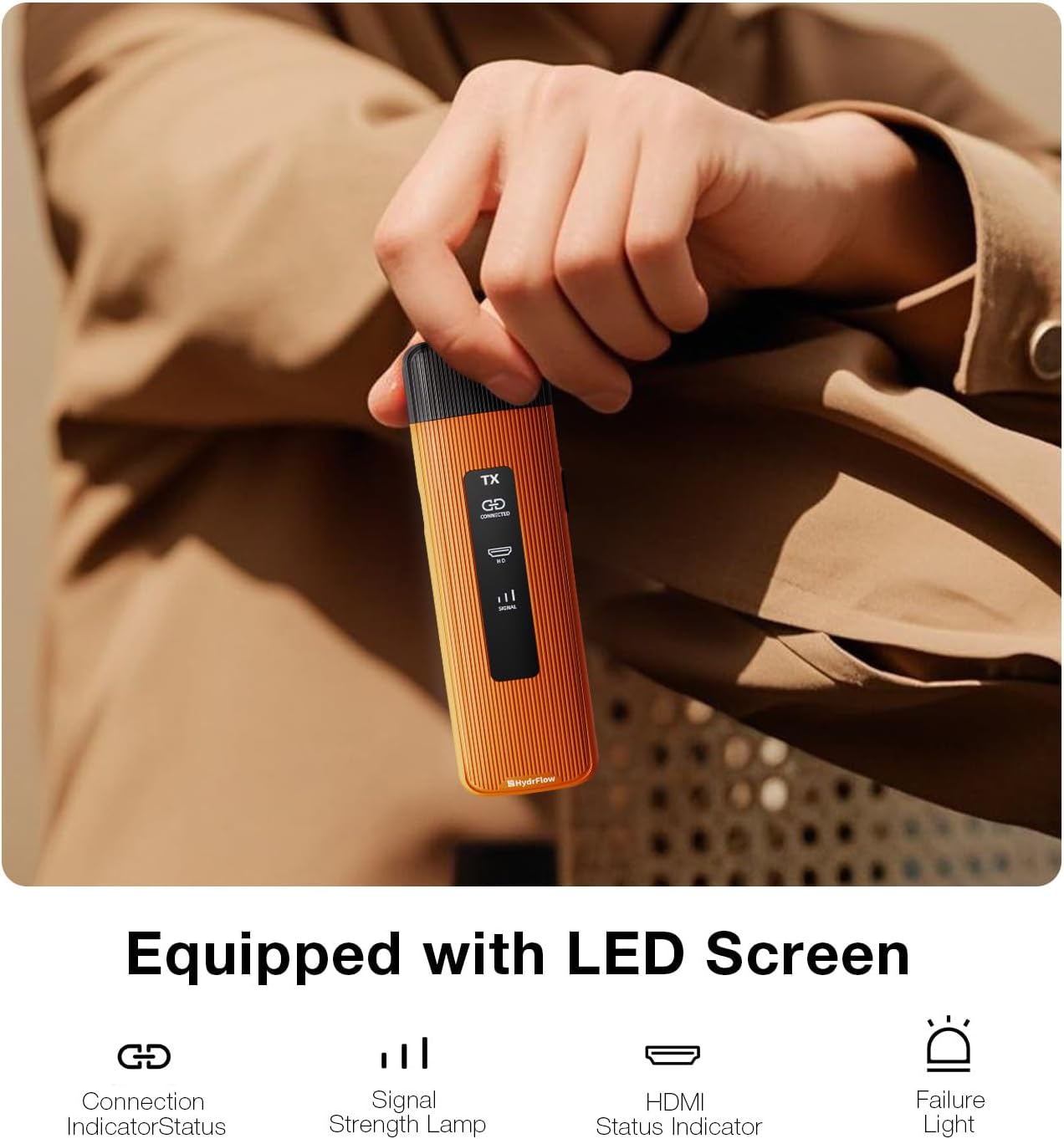 - 【Plug and play, Simple and Efficient】Wireless HDMI transmitter and receiver require no APP, no Bluetooth, no Wi-Fi connection, no configuration hassle, easily connected in about 10 seconds. say goodbye to the traditional wired connection, make your office or room more neat and tidy. The newly upgraded wireless HDMI transmitter and receiver are equipped with LED display screens, providing real-time insights into connection, signal, output, and power status, making it easy to manage device operations and enjoy audio-visual entertainment without worry