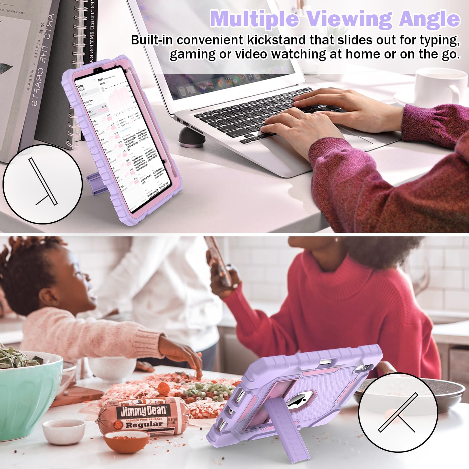 Grifobes Case for iPad Mini 7 (A17 Pro) 2024 / Mini 6 2021 8.3 inch, Heavy Duty Shockproof Rugged Cover with Pencil Holder Stand, for I Pad Mini 7th/6th Gen 8.3" Case for Kids Girl (Purple)