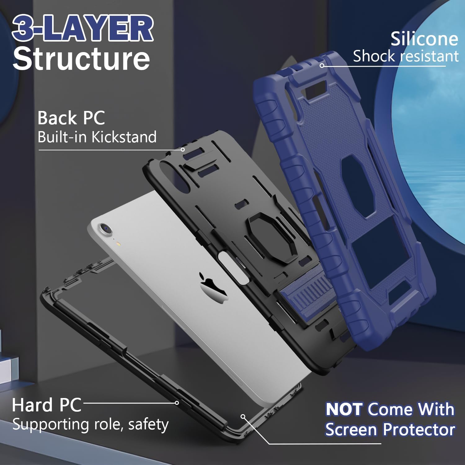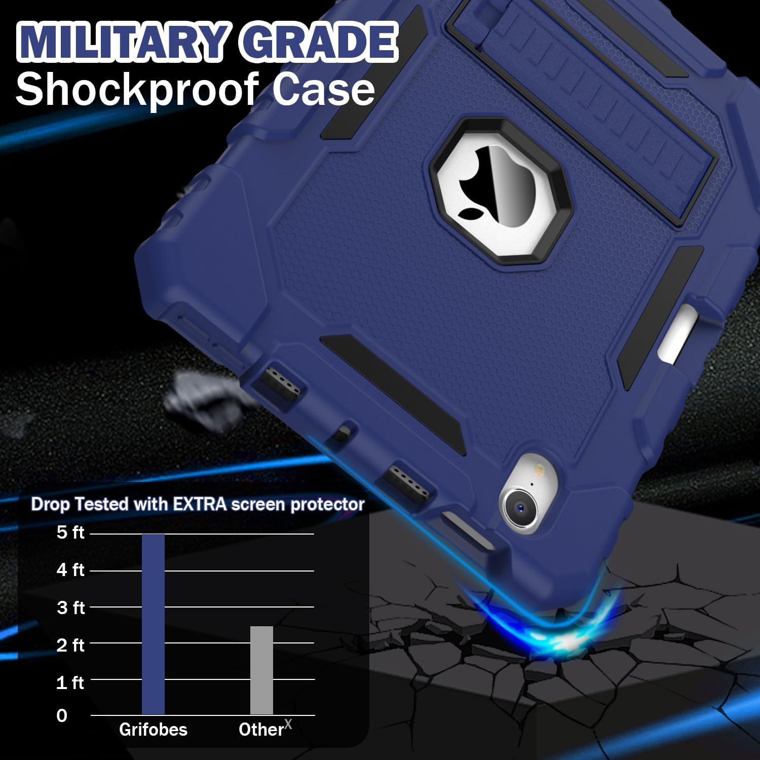 Grifobes Case for iPad Mini 7 (A17 Pro) 2024 / Mini 6 2021 8.3 inch, Heavy Duty Shockproof Rugged Cover with Pencil Holder Stand, for I Pad Mini 7th/6th Gen 8.3" Case for Kids Boys (Navy Blue)