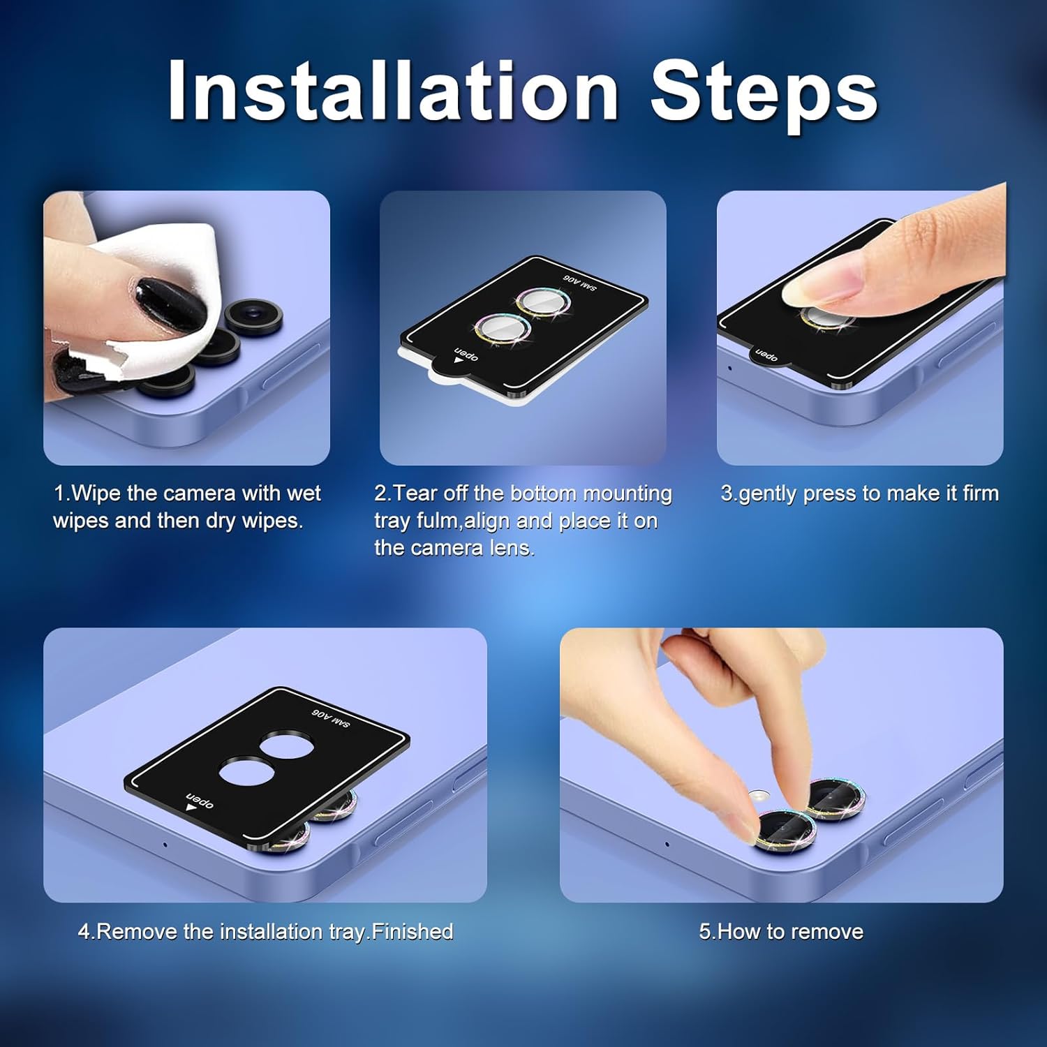 - 【Easy Installation & Lifetime Service】The lens protectors are preset in an easy installation tray. Simply peel off the plastic plate, align and firmly press down the lens protectors to the camera lenses, and then remove the tray. If you have any question or product problem, just contact us and we will reply to you as soon as possible.