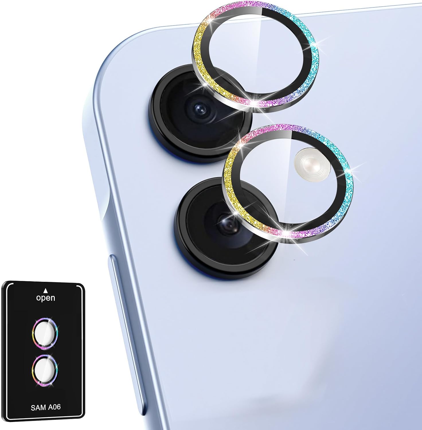 for Samsung Galaxy A06 Camera Lens Protector, Individual Metal Ring Tempered Glass Lens Cover, [Strong Adsorption] Scratch Resistant Ultra-Thin HD Clear Lens Cover, 1 Set-Colorful Sparkly