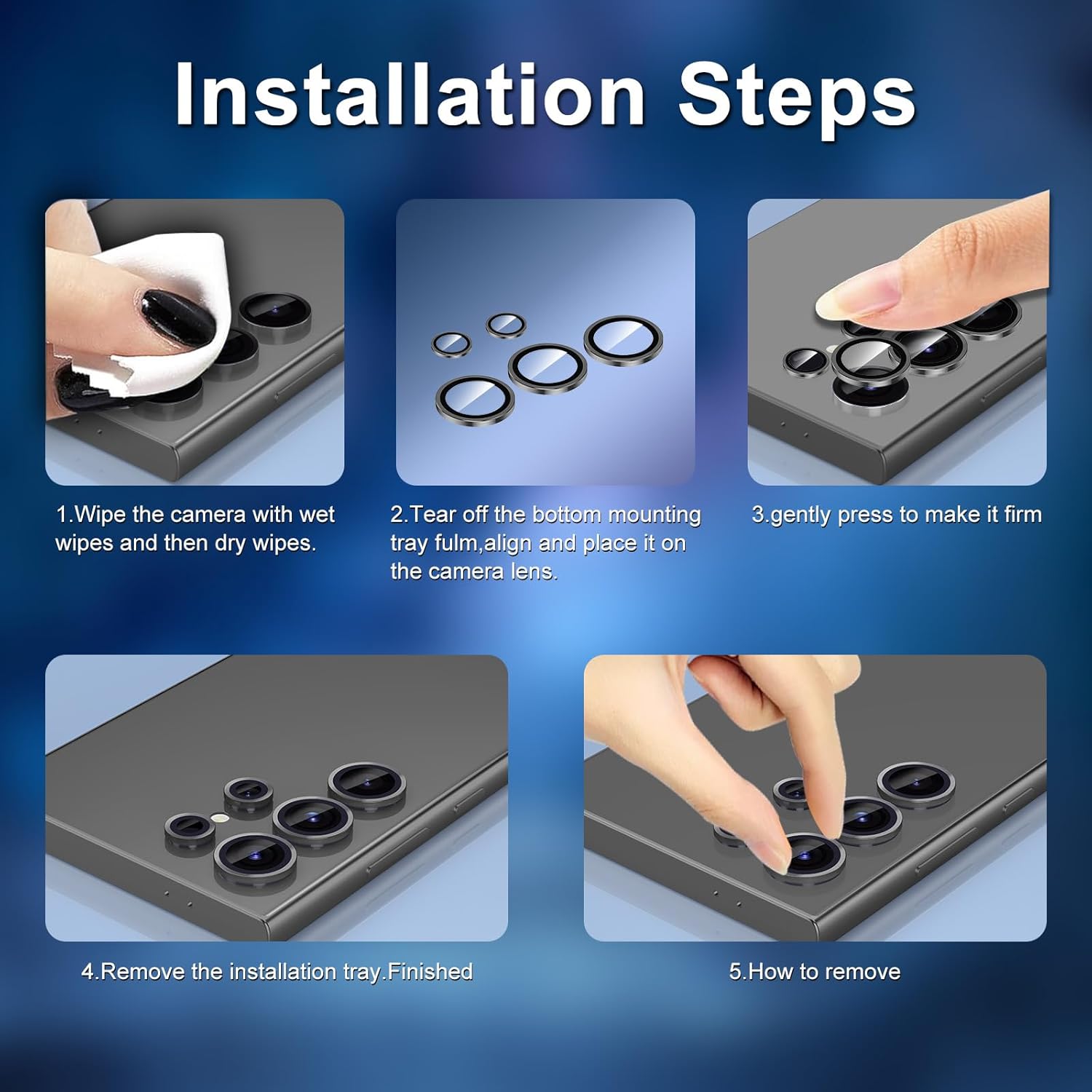- 【Compatible Model】This ultra-thin camera lens protector only compatible with Samsung Galaxy S23 Ultra. DO NOT FIT other models. Easily fit and match with most phone cases.
