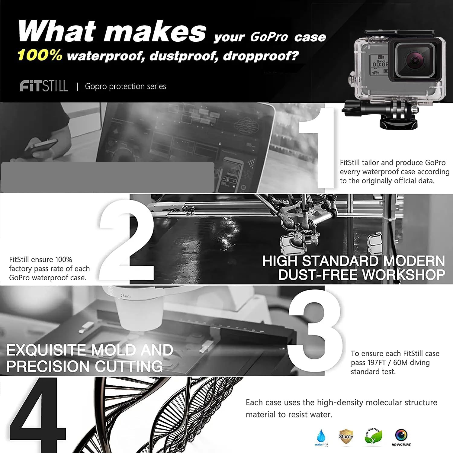 - 【Wide Compatibility】This waterproof housing case is compatible with Go Pro Hero 2018/7/6/5 Black cameras perfectly.It provides ultimate protection for your Go Pro Hero 2018/7/6/5 Black during extreme outdoor activities and Deep-Water diving.