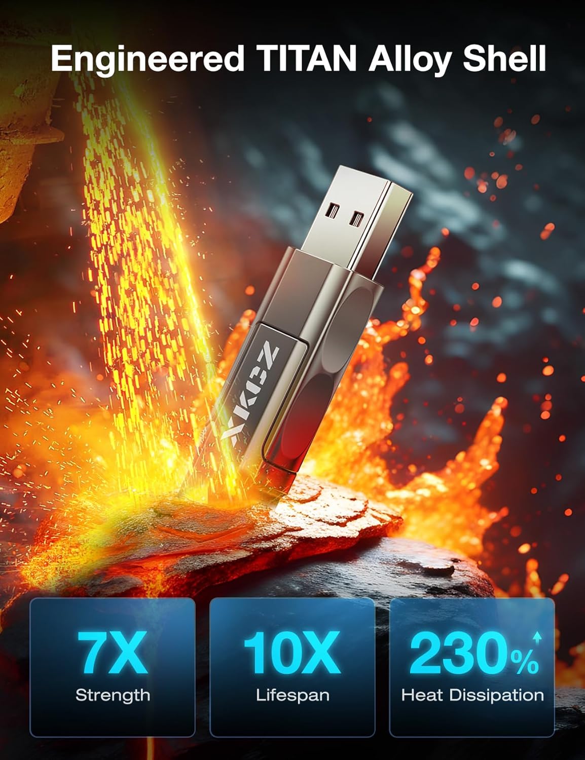 - [TITAN Alloy Shell] The shell of the USB C cable is made of TITAN Alloy developed by XKCZ, which increases the strength by 700% and the life span by 10 years