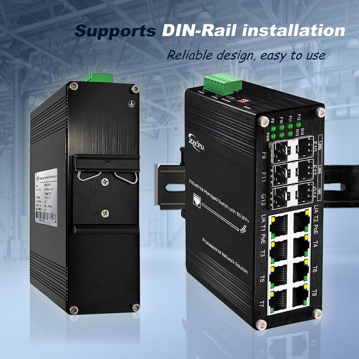 - Included Components : 1* User Manual, 1*14-port 10G PoE Ethernet switch, 1*6-pin terminal block