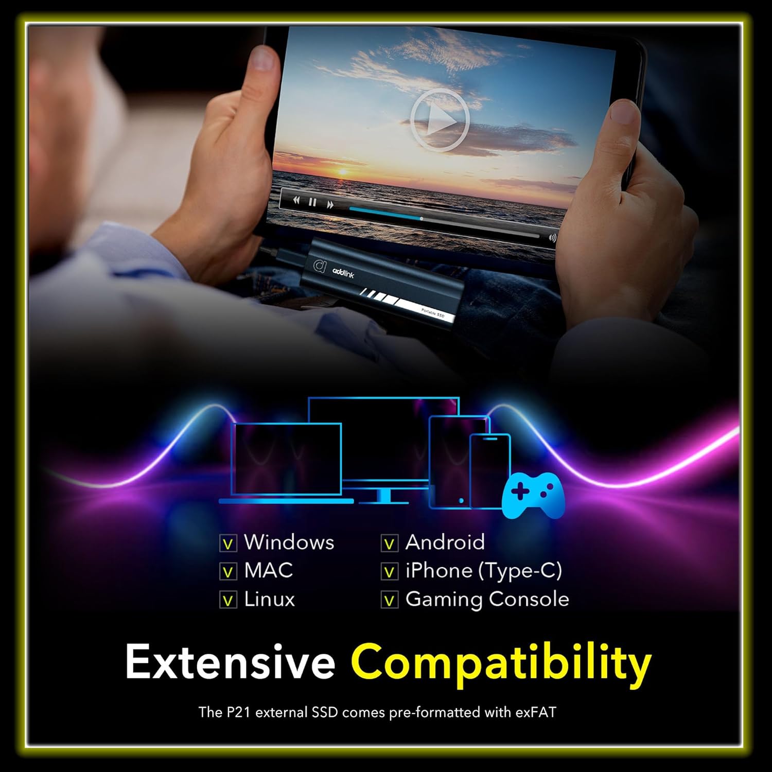 Addlink P21 2TB Portable External SSD, Up to 2,000MB/s Read, USB 3.2 Gen 2x2, Lightweight Storage for Photography, Video, Gaming and Fast backups, for PC Laptop Mac Windows Linux Android PS4 PS5