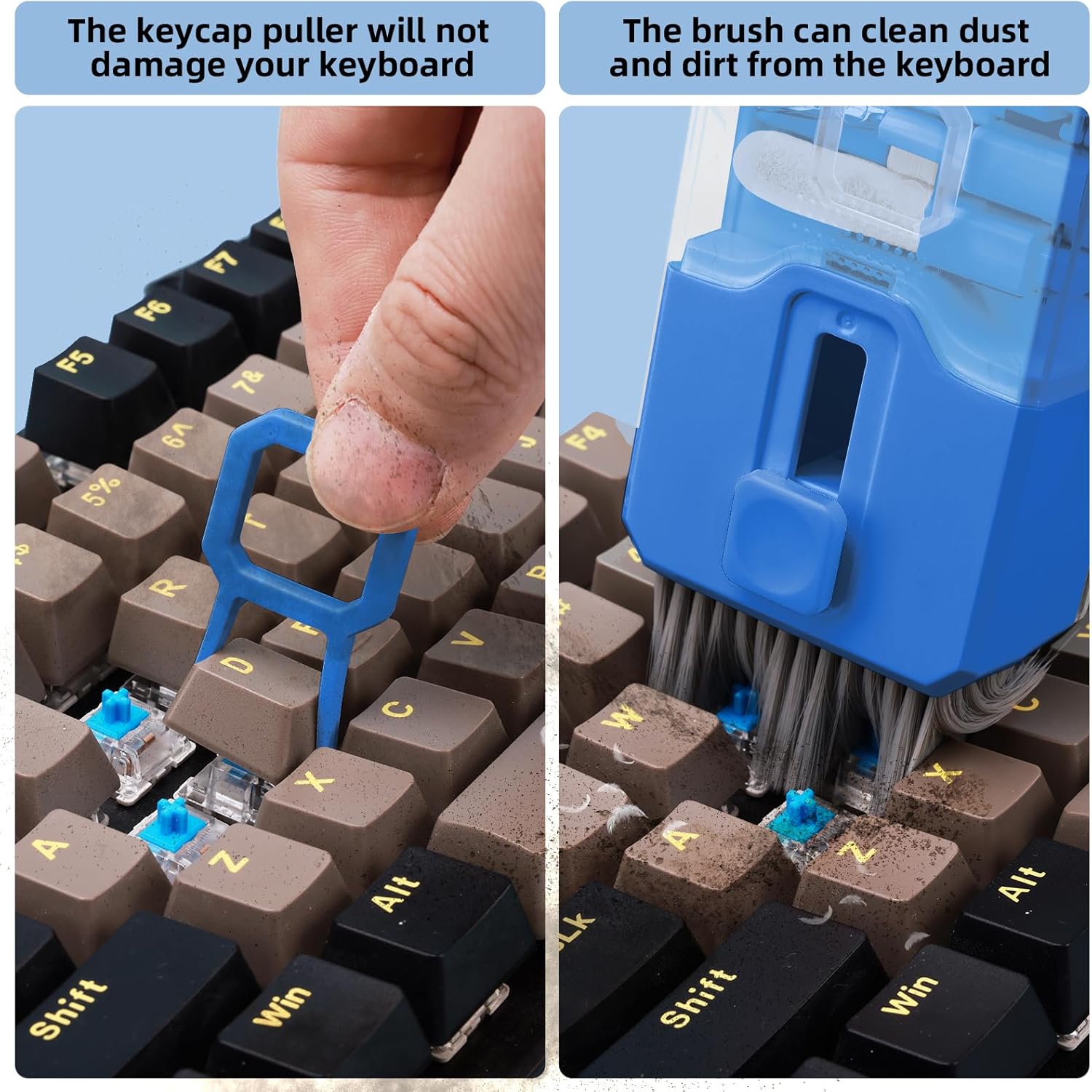 - 【PROFESSIONAL KEYBOARD CLEANING KIT】 The laptop screen cleaner keyboard cleaner can pull out the keycaps of gaming keyboards and mechanical keyboards. A retractable keyboard brush works on laptops and keyboards, while the mini high-density brush is great for deep cleaning between keys for cleaning between flatter keys on a laptop, the metal pin tip gently removes any stains. This electronic cleaning kit macbook cleaner totally meets professional cleaning needs