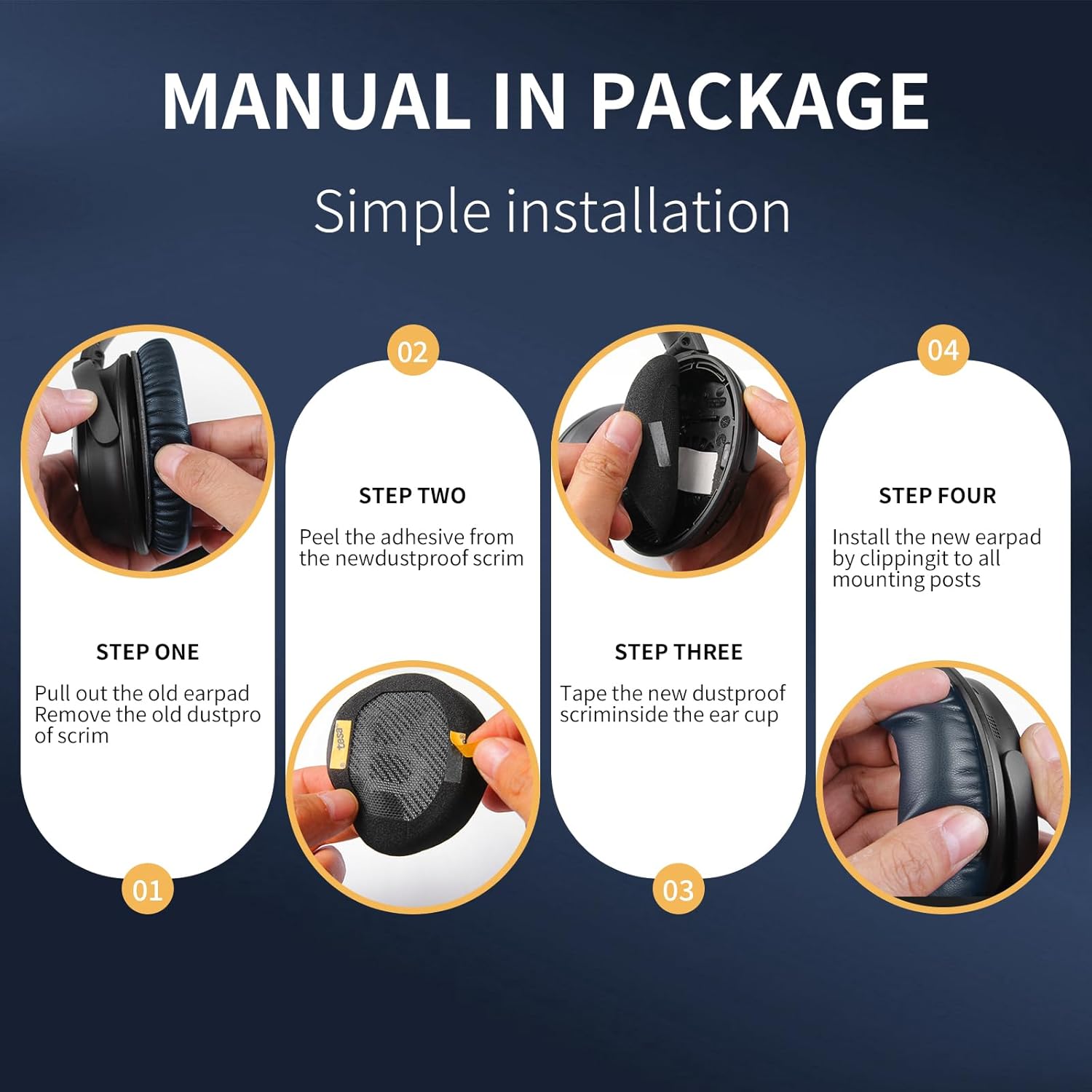 - The package comes with a installation instruction, which is easy to follow, and earpads are easy to install and put on without any tools.