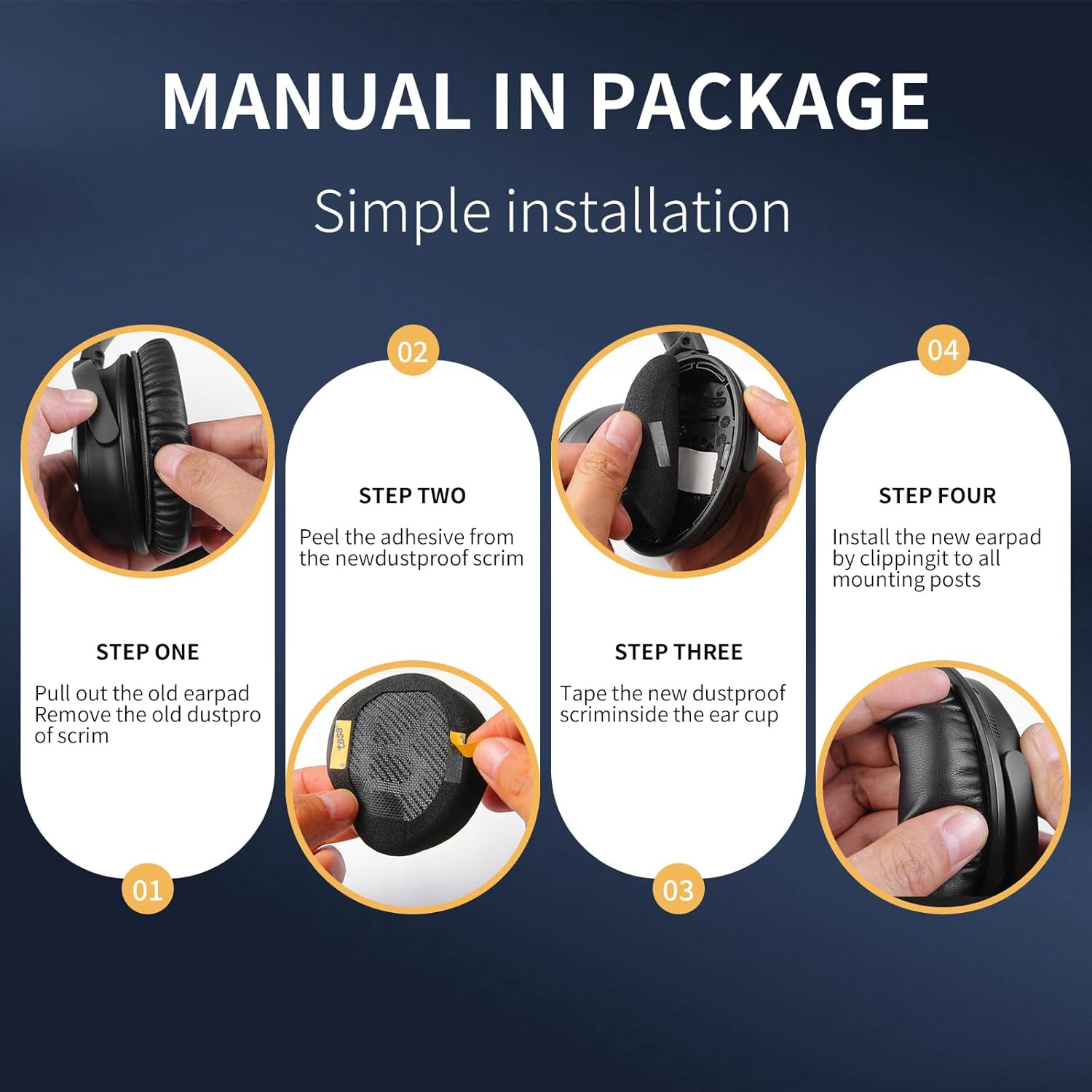 - The package comes with a installation instruction, which is easy to follow, and earpads are easy to install and put on without any tools.