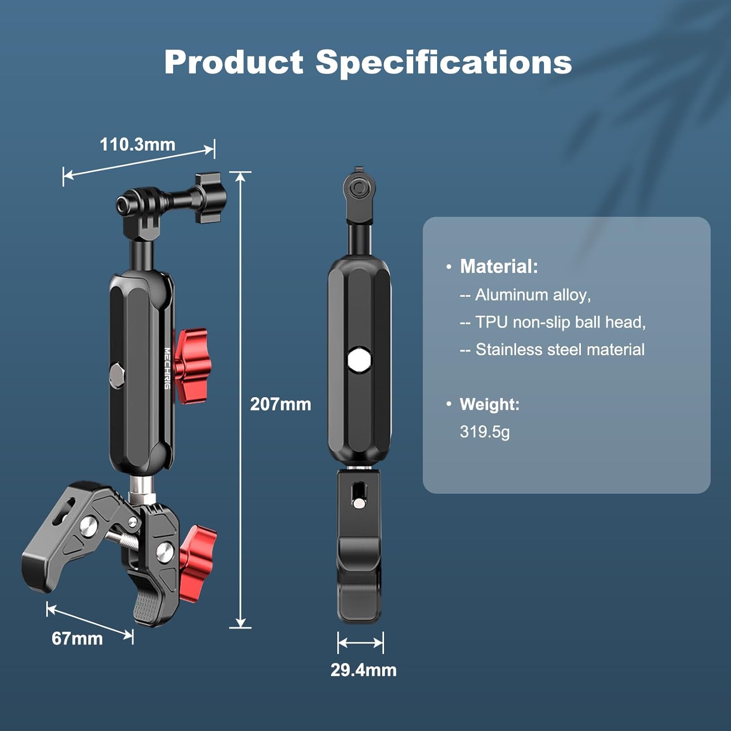- Any Angle: This 360°adjustable camera clamp mount is perfect for photography and studio video shooting during rides, featuring a bottom clamp with a maximum opening distance of 67mm. Its dual ball heads allow for 360º free rotation, meeting all your shooting angle needs