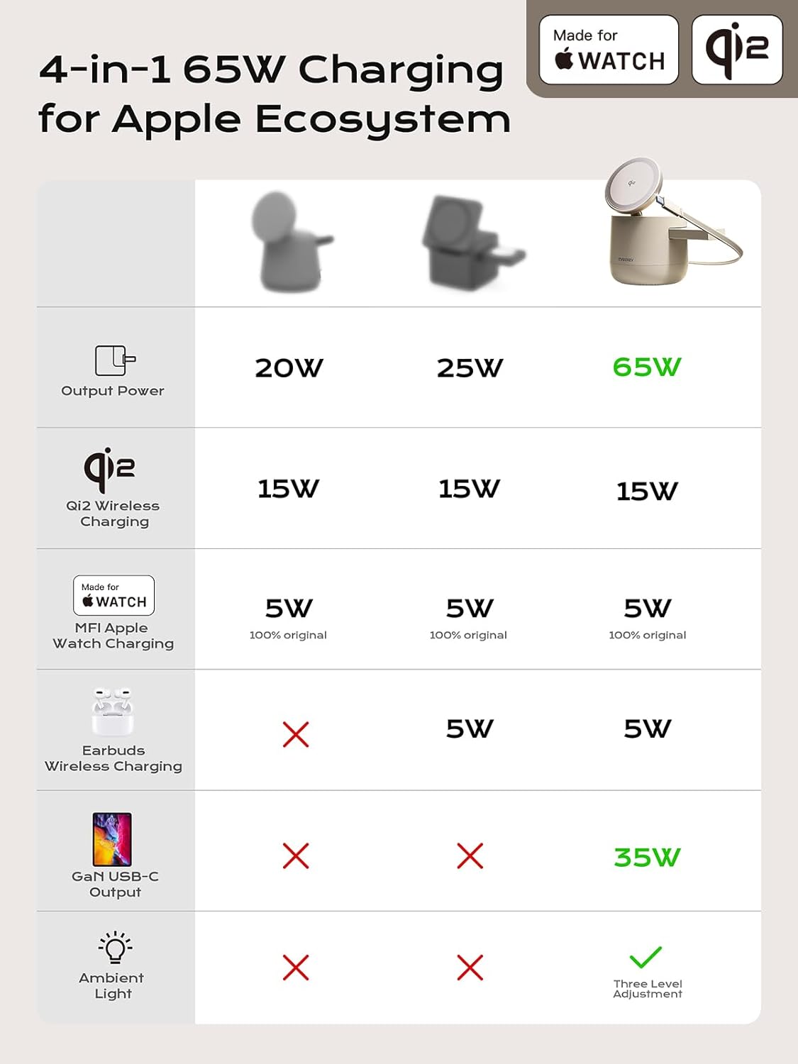 - Special Feature : 65W PD Adapter with 5ft Braided Cable included, Advanced AI Intelligent Chips Control Core,Skin-friendly Touch, Distinctively Elegant Design, Exclusive 3FT Retractable Cord & Relaxing Ambient Light, Magsafe Compatible & Made for Apple Watch, Qi2 Certified 15W Wireless Fast Charging 65W PD Adapter with 5ft Braided Cable included, Advanced AI Intelligent Chips Control Core,Skin-friendly Touch, Distinctively Elegant Design, Exclusive 3FT Retractable Cor… See more