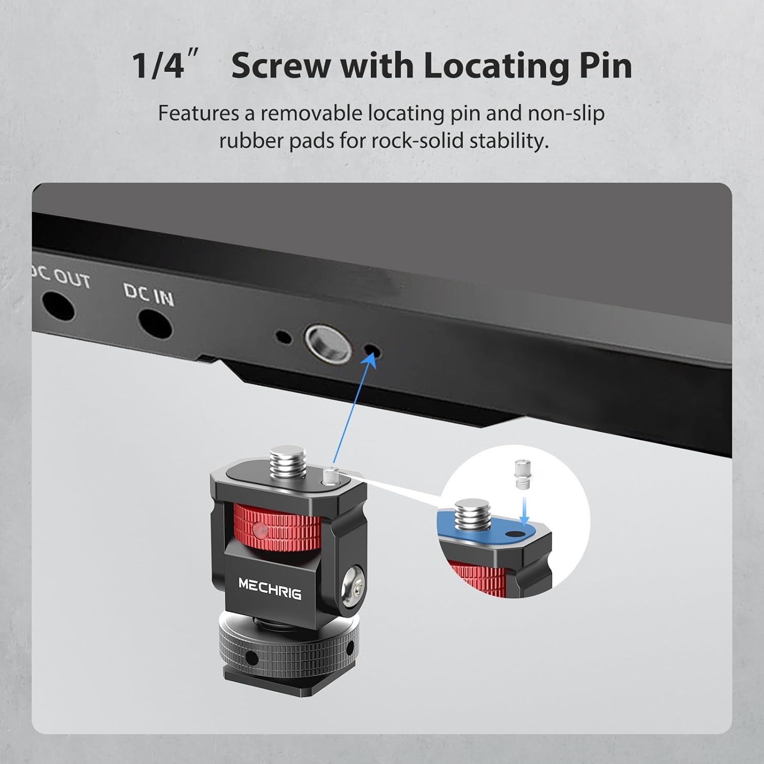 - Versatile Camera Monitor Mount with Cold Shoe: Mini Camera Monitor Mount features a built-in cold shoe for attaching to camera, camera cages or brackets. The cold shoe also includes a removable 1/4" to 3/8″ screw hole for compatibility with magic arms or stabilizers, making it perfect for on-the-go filmmakers and photographers