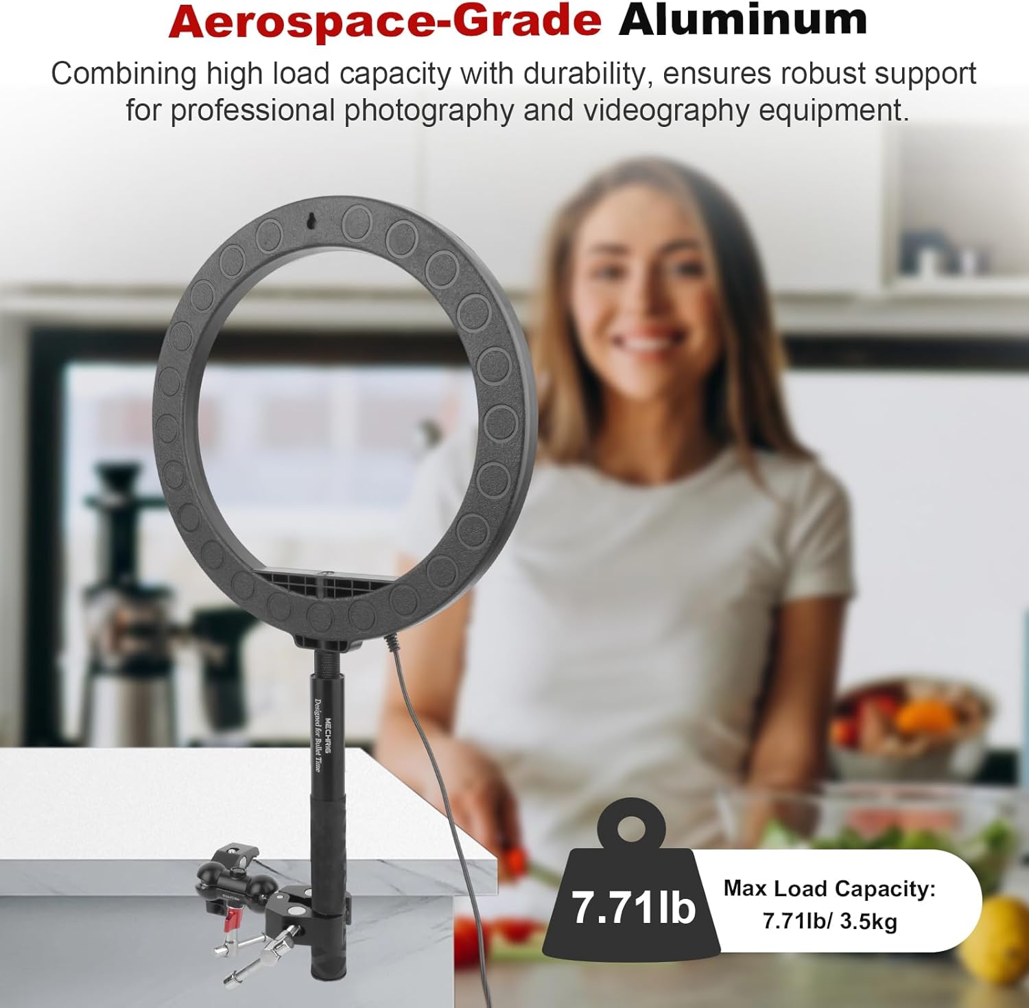 - Dual 360° Ball Heads – Precision Adjustments, Zero Slippage: The dual ball heads offer fluid 360° horizontal and vertical adjustments, letting you pivot cameras, phones, or ring lights to any angle—overhead product demos, low-angle action shots, or dynamic live streams. Anti-slip textured grips and a 7.7LB/3.5KG load capacity ensure heavy gear stays locked in place, even at extreme angles. No wobble. No slippage. Just crisp, professional results