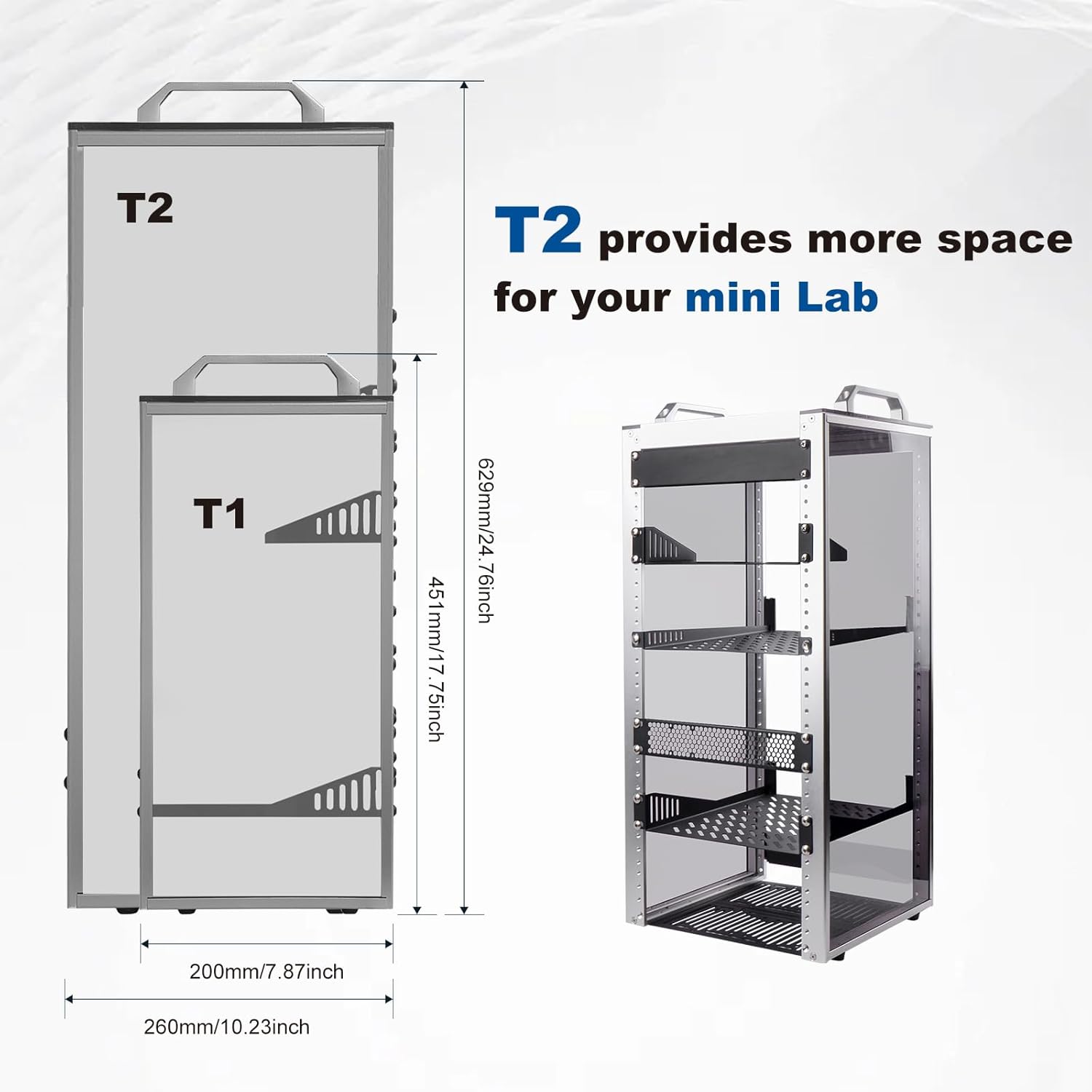 - 【DeskPi RackMate T2】It's made of aluminum alloy and acrylic frame mini chassis which you can setup your own cluster or home assistant server. For 10 inch 4U Server Cabinet (DeskPi RackMate T0), please refer to ASIN B0DPGZPTPP . For 10 inch 8U Server Cabinet (DeskPi RackMate T1), please refer to ASIN B0CSCWVTQ7 .