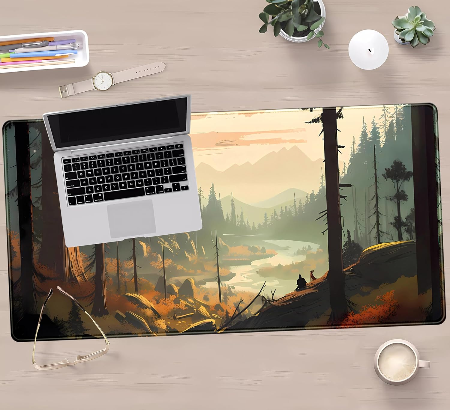 Desk Mat Gaming Desk Pad Valleys, Forest Mouse Pad XXL Extended Large Mouse and Keyboard Mat, Computer Desktop Mat with Non-Slip Base & Stitched Edges, Aesthetic Nature Desk Decor 31.5" x 15.7"