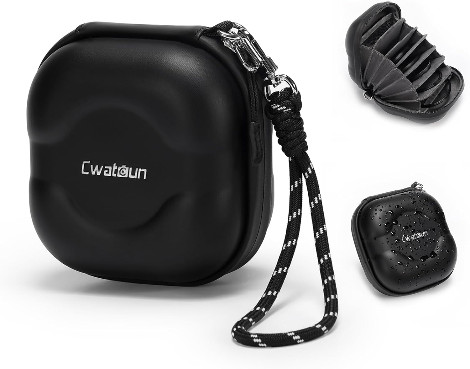 Cwatcun Hard Shell Lens Filter Case, Camera Filter Case for 7 Filters Up to 100mm with Hand Strap, Dustproof & Waterproof Camera Lens Filter Storage Case for ND UV CPL Filter Pouch