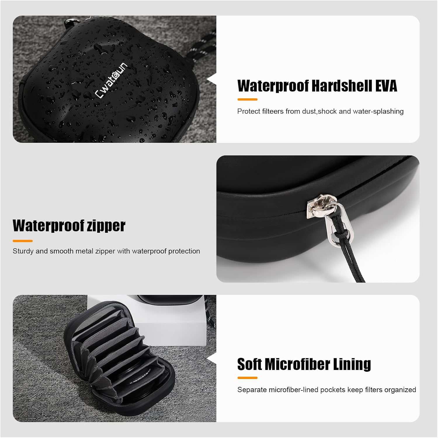 - Durable & Strong protection: This lens filter case is made from sturdy EVA material, this hardshell lens filter case is both waterproof and scratch-resistant. It can withstand accidental drops, bumps, and the elements, ensuring your filters remain in pristine condition.