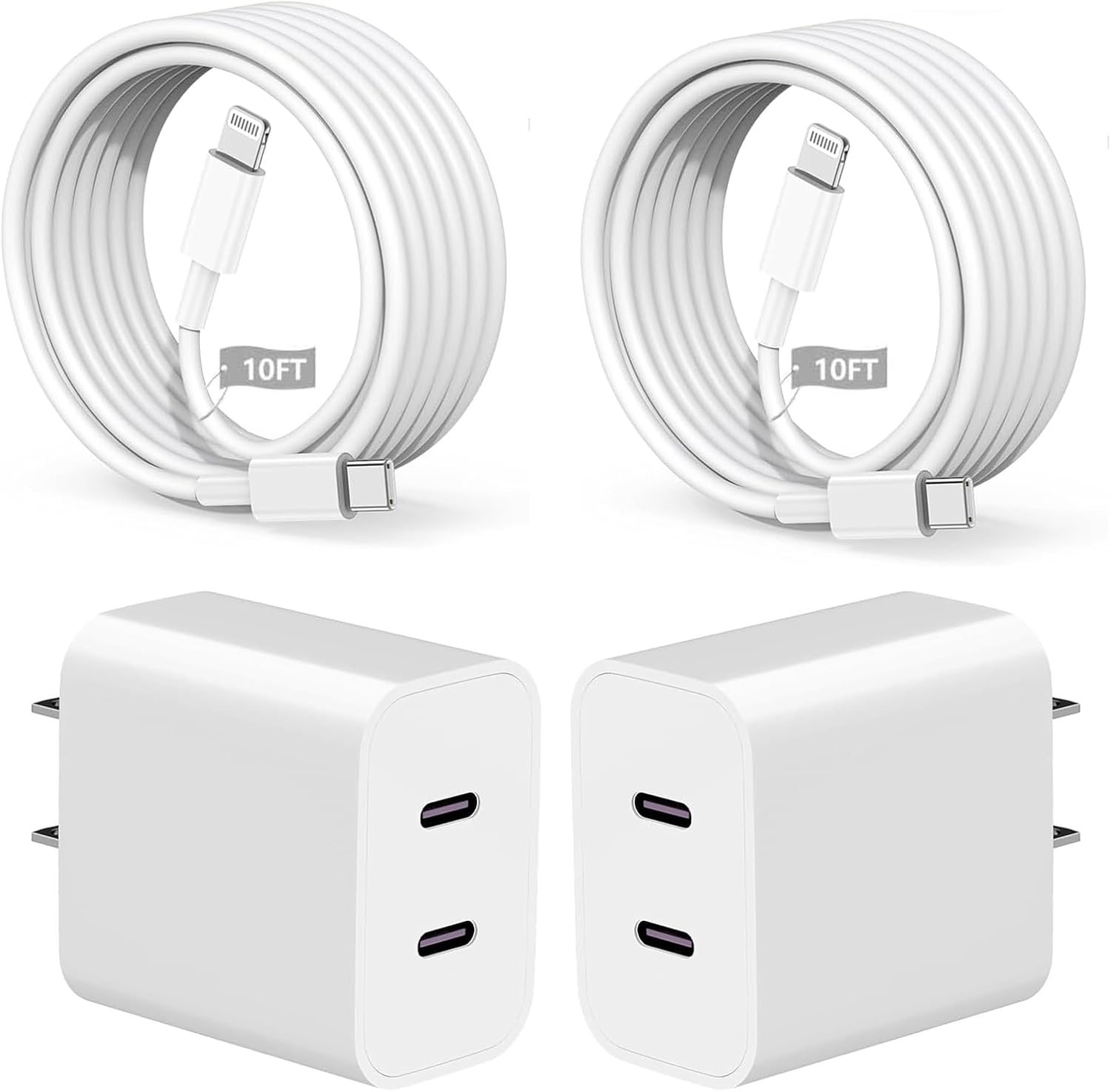 - 【Efficient After Sales Reply】2-Pack Double USB C Port Fast iPhone Wall Charger Adapter + 2-Pack 10FT USB C to Lightning Cable.If you Have any Question When you Receive your iPhone Wall Charger Block and iPhone Charger Cord Package,Please do Not Hesitate to Click the After-Sales Button.We are Very Happy to Have Communication With you About your Package and Promise to Reply to your Questions Within 24 Hours.