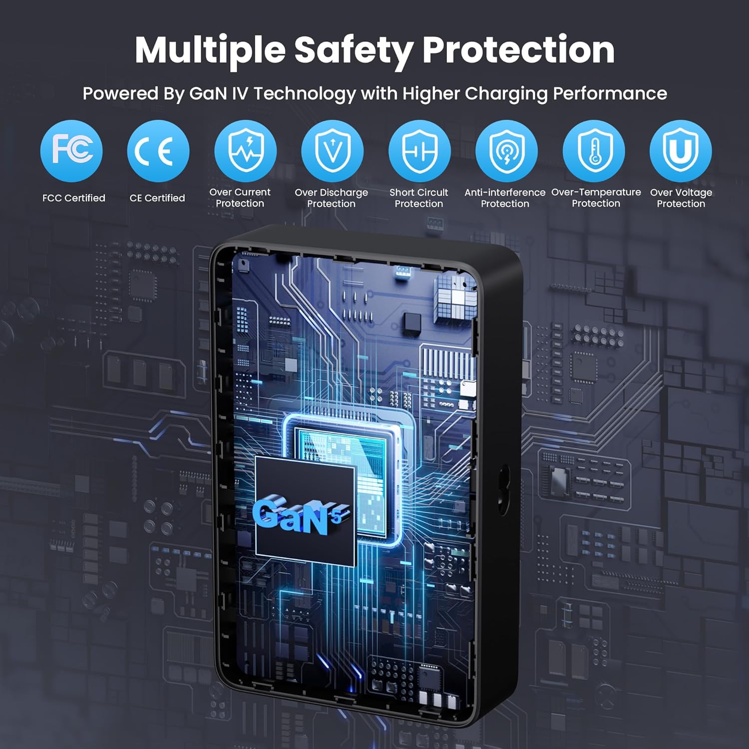 - 【GAN Fast USB Charging Station】The USB C charger adapted GaN5 generation chip technology, built-in multi-protection system and premium microchips. With higher energy efficiency, higher resistance to radiation and upgraded heat dissipation, Gallium Nitride (GaN) makes our chargers smaller and safer without sacrificing a drop of power.