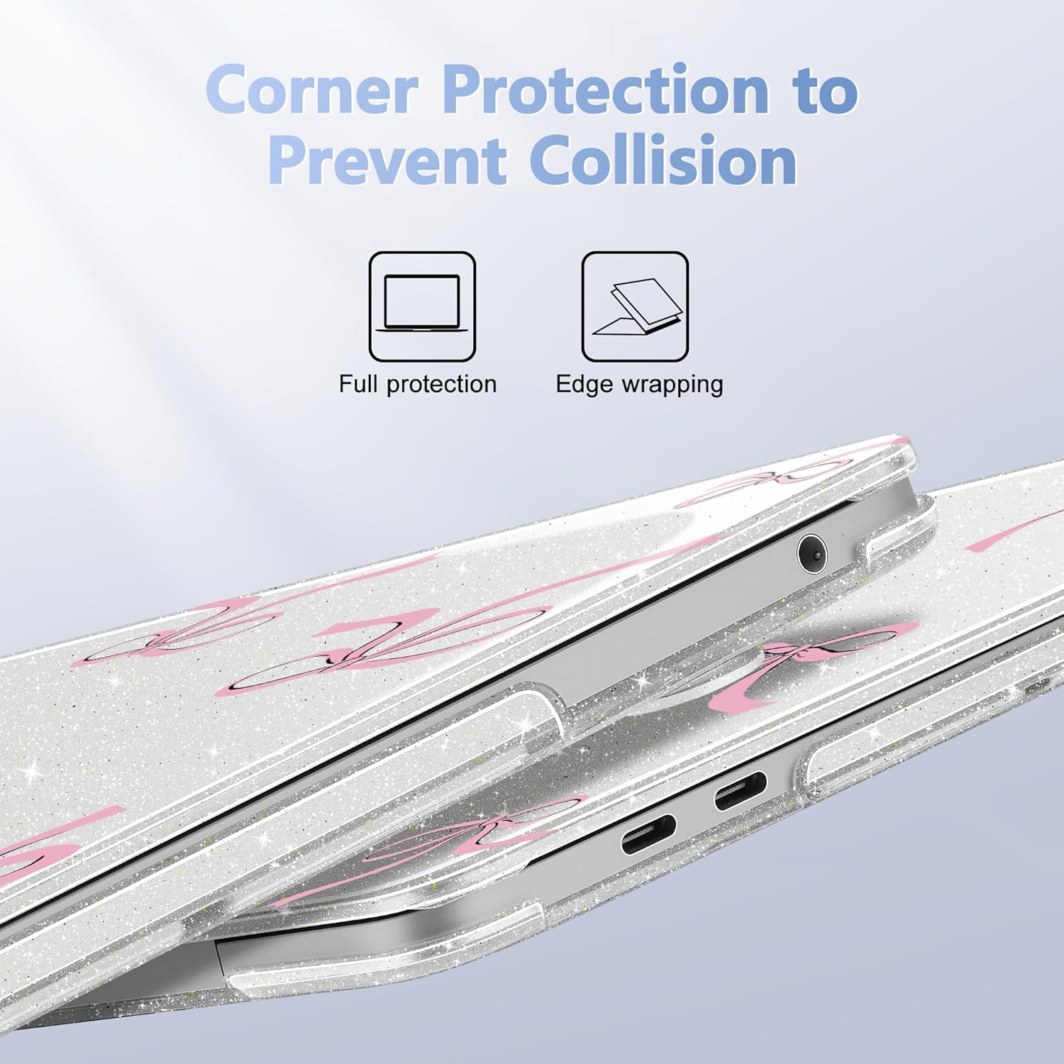 May Chen Case for MacBook Pro 13 inch M2 2023,2022,2021,2020 A2338 M1 A2251 A2289, Plastic Hard Shell Case for MacBook Pro 13" with Touch Bar Fits Touch ID, Clear Glitter Bow