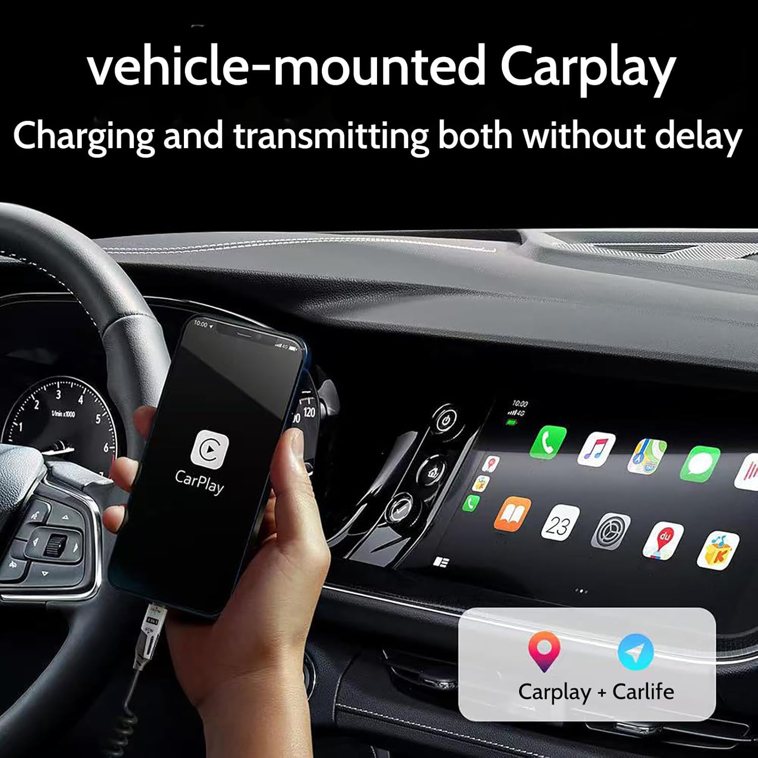 - 【Coiled USBC Cable】: This carplay charging cord with a resilient spring shape design is sturdy and portable. This coiled multiport charging cord(USB to USB C /C-L cable) extends from 1.7 feet to 5 feet. Offers you more convenience on traveling, office, car, power bank. The retractable USB C cable helps keep the car console neat, can save space in your car, and say goodbye to the hassle of data cable clutter and tangles.