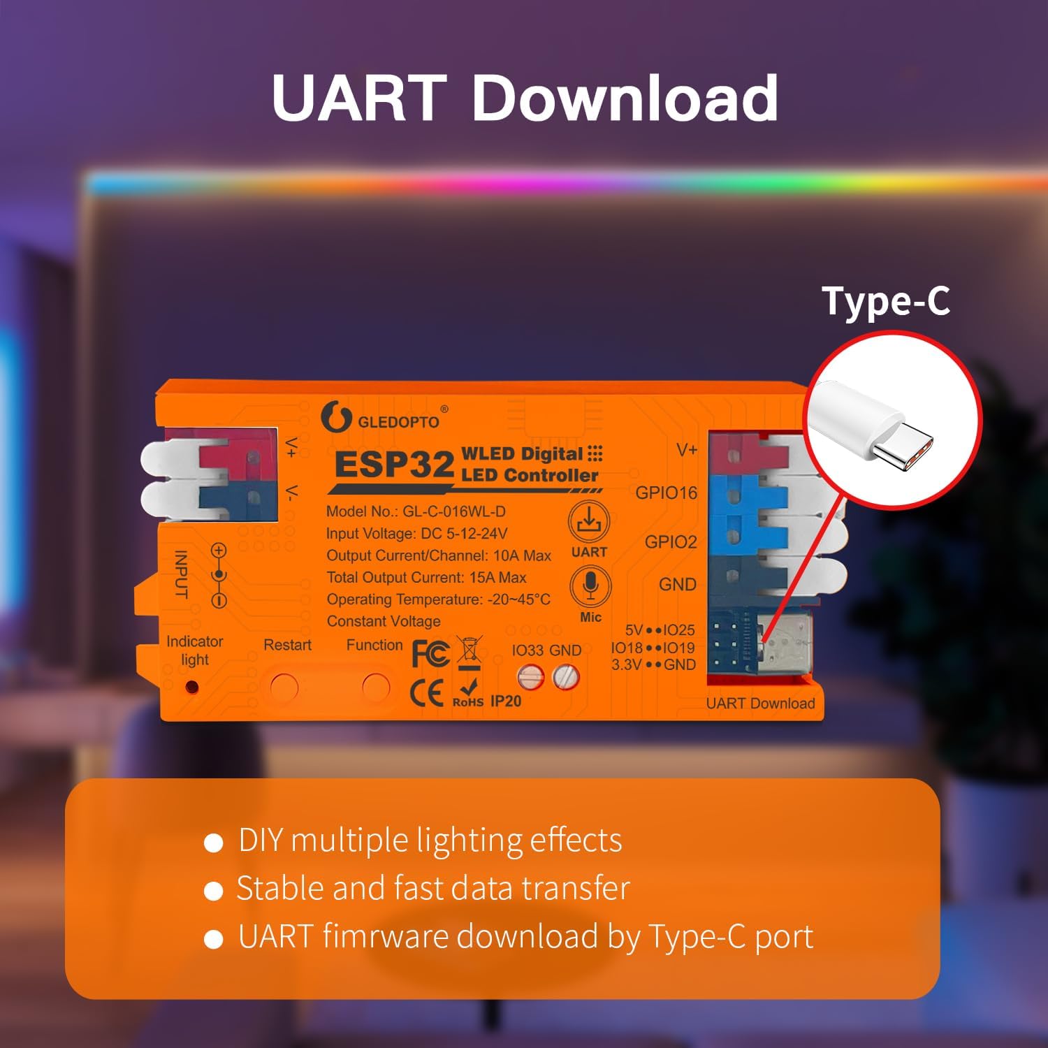 - Efficient ESP32 Chip, Easy Control: This light strip controller is equipped with a high-performance ESP32 chip, showing remarkable strength. With its powerful function, it can directly and seamlessly connect to the wled app via Wi-Fi, getting rid of the gateway limitation. It makes intelligent control effortless and the operation process simple and clear