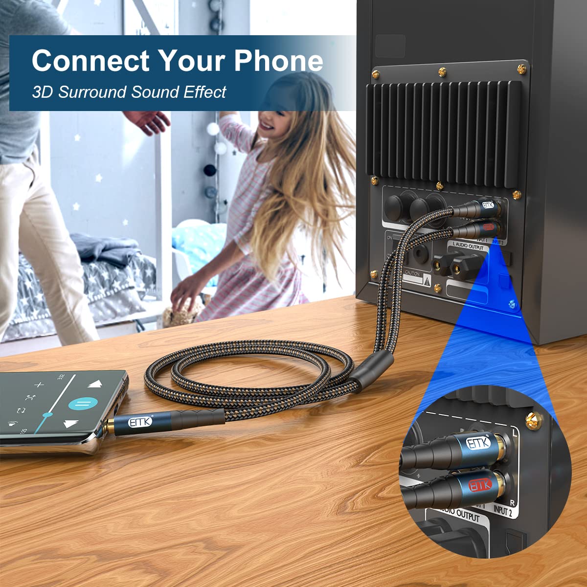 EMK 3.5mm to 2RCA Cable 24K Gold-Plated Nylon Braided RCA to Auxiliary Stereo Audio Headphone Male to Male 1/8 to RCA Cord for Tablet,Subwoofer,Home Theater,DVD Speaker,MP3/MP4,Player 3.3ft/1m