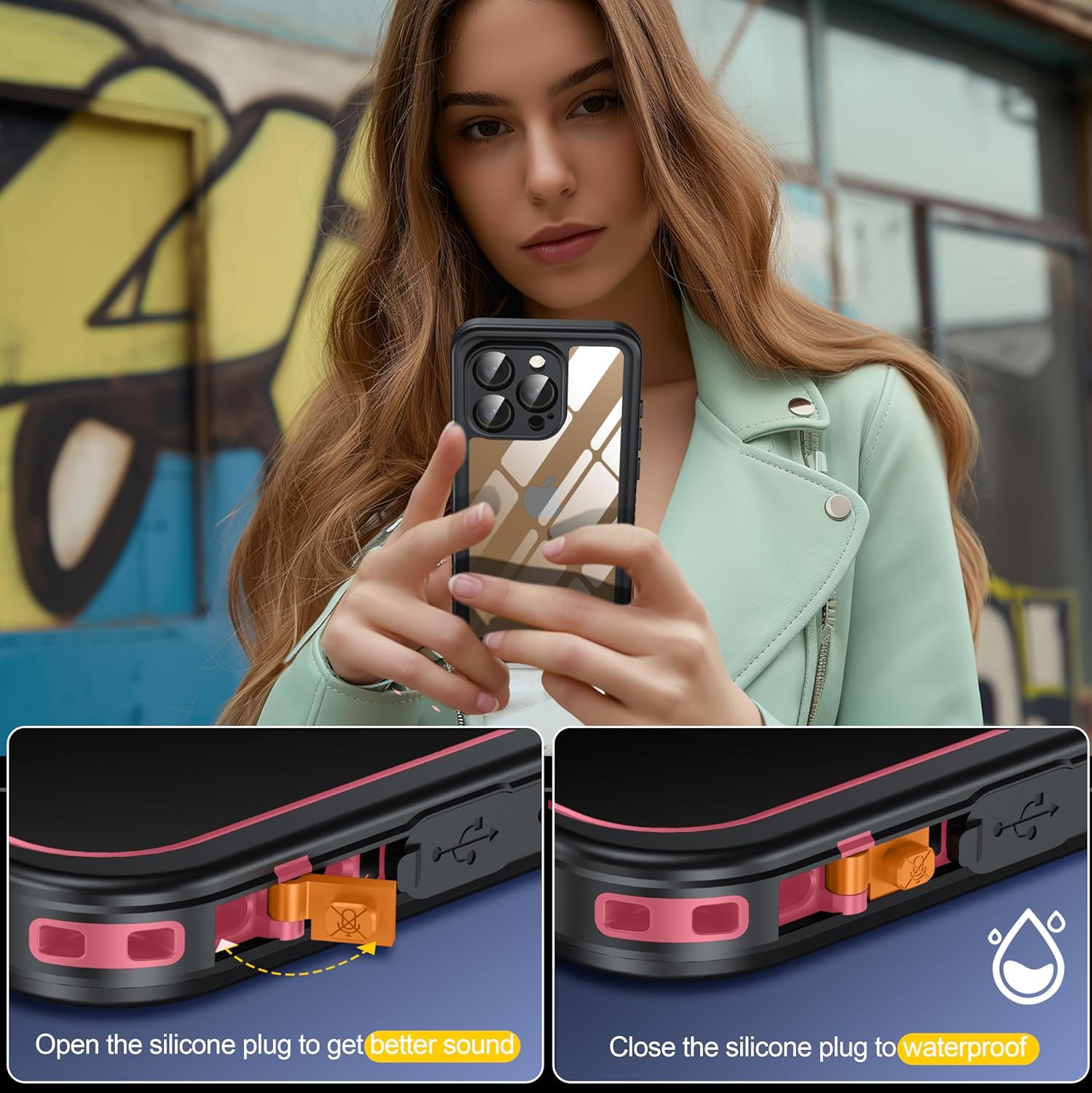 - 【IP68 Waterproof】AMILIFECASES waterproof case is designed for iPhone 16 Pro (6.3 inches) and is IP68 waterproof certified, it can be submerged up to 2M underwater for 1 hour, supports underwater photography, swimming, snorkeling and other underwater activities. (Please check whether the plug is in a waterproof position or a call clearer)