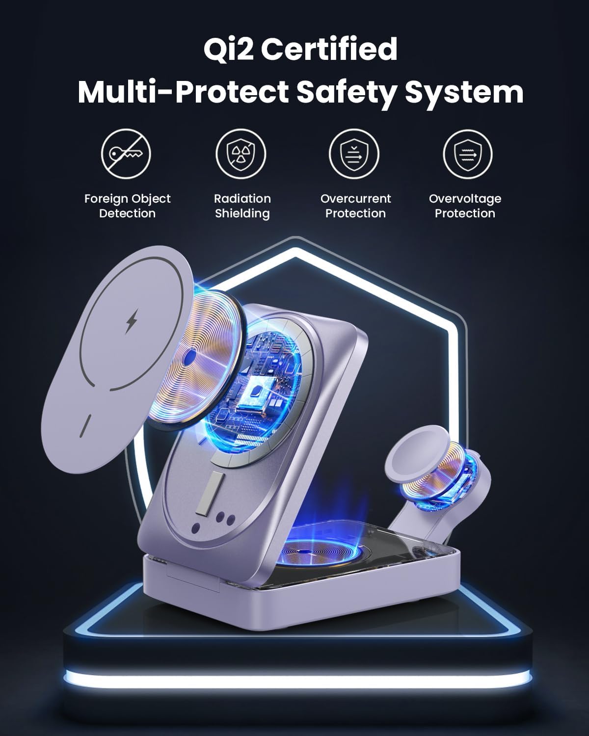 - 【Safe & Easy to Use】You will get a wireless magnetic portable charging station, a 5ft charging cable, a 30W adapter, a user guide. Charging Station with multiple safety mechanisms, including overcharge, short circuit, and overheating protection, this charger guarantees comprehensive safety for your devices, giving you peace of mind. The charger is user-friendly and perfect for home or office settings, offering a reliable charging experience. The quick charging capabilities of this wireless charger, its compatibility with MagSafe.