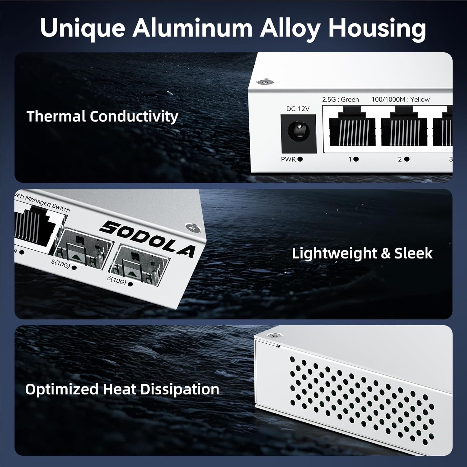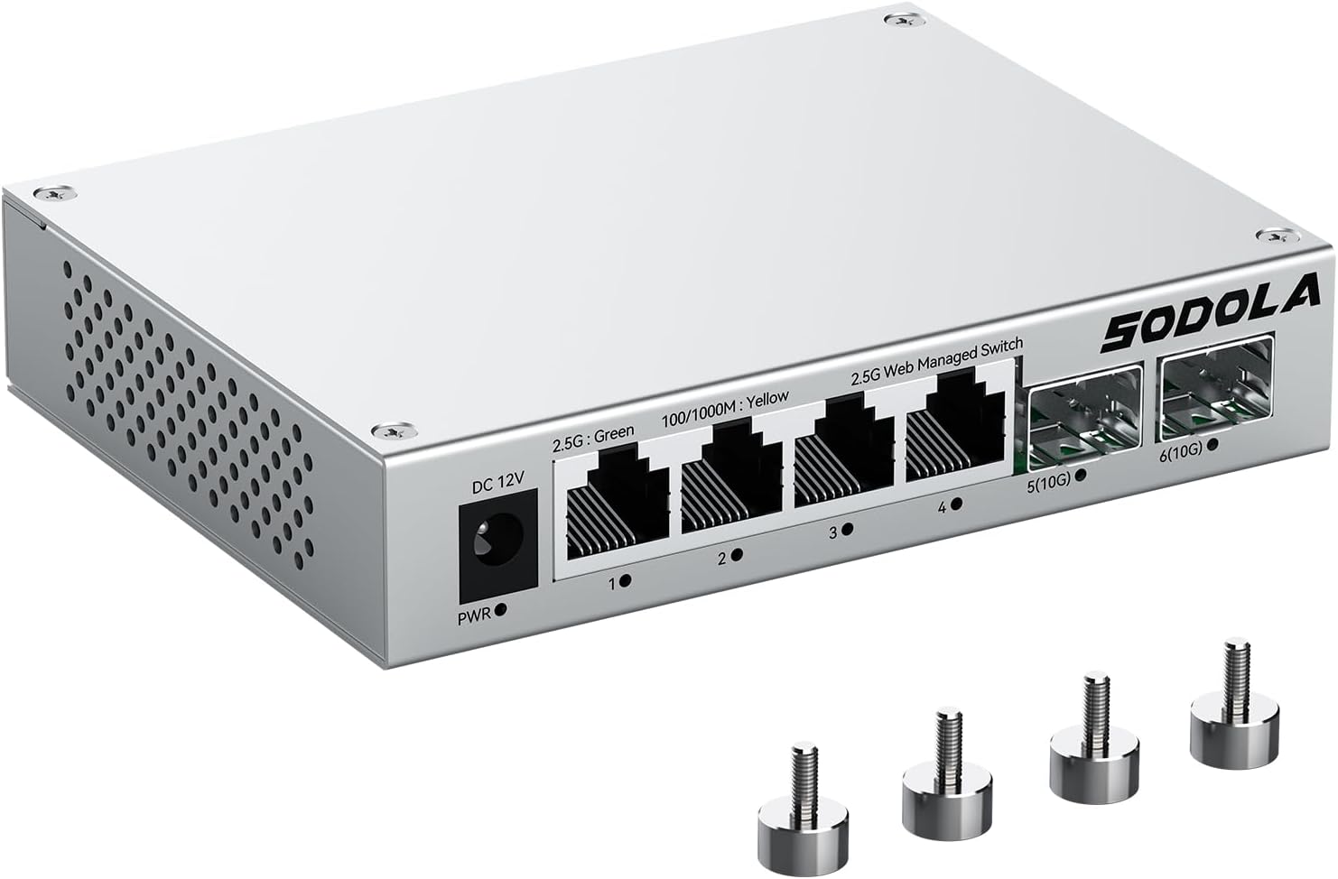 SODOLA 6 Port 2.5Gb Easy Web Managed Switch, 4 x 2.5G Base-T Ports, 2 x 10G SFP+,Aluminum Alloy Cooling & Magnetic Mounting - LACP/QoS/VLAN/IGMP Managed Multi-Gigabit Switch for Homelab