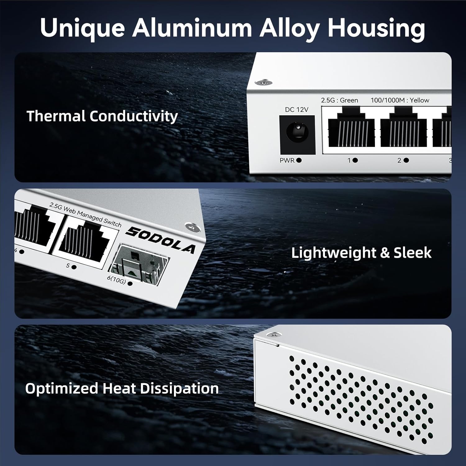 SODOLA 5 Port 2.5Gb Switch Managed, 5X 2.5G Base-T Ports, 1x 10G SFP+,Aluminum Alloy Cooling & Magnetic Mounting - LACP/QoS/VLAN/IGMP Web 2.5G Network Switch for Homelab