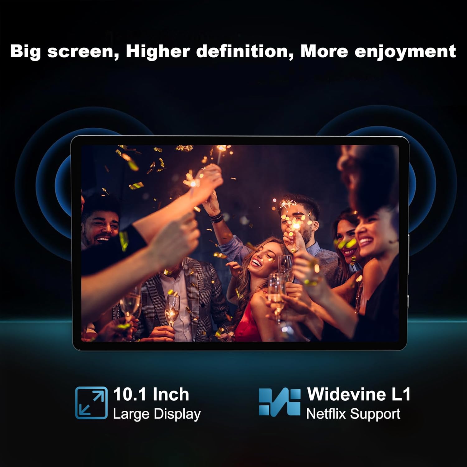 - 【Visual impact】This 10.1-inch tablet has an ultra HD screen, 1280x800 resolution, equipped with 13MP+8MP dual HD camera, for you to present a richer picture display, clearer portrait capture, the screen's soft light curtain can reduce the visual pressure on the eyes, relieve work fatigue.