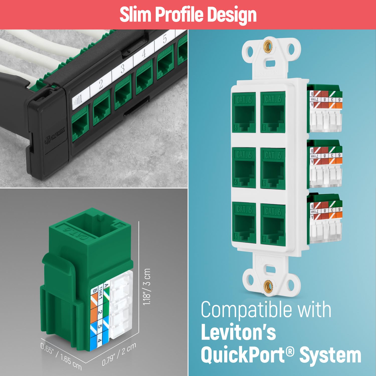 Everest 90° Angled RJ45 Cat6 Keystone Jacks 100-Pack in Green - Slim Profile Female RJ45 Connectors - Cat 6 Keystone Jack - Compatible with 90° Angled Speed Termination Tool - easyJACK (B094WB91H3)