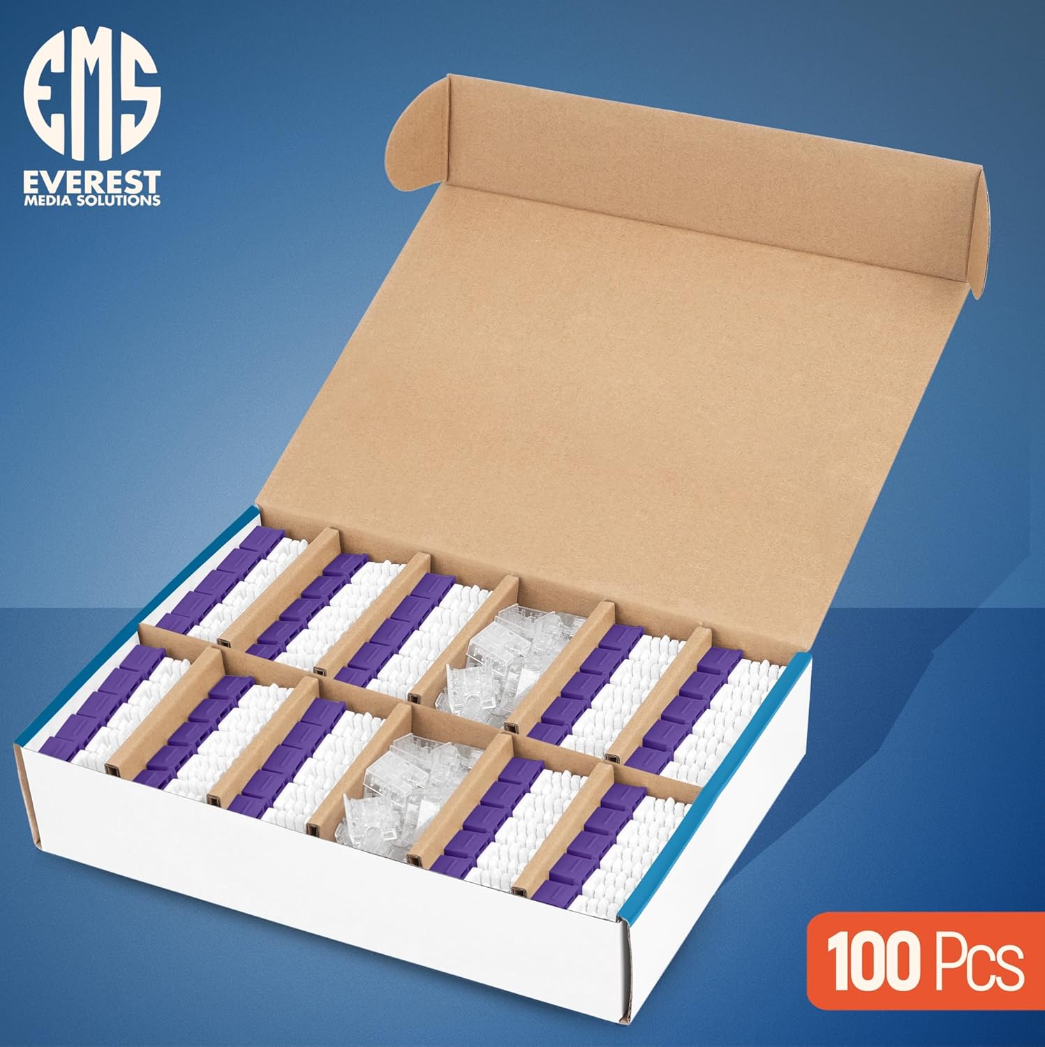 Everest 90° Angled RJ45 Cat6 Keystone Jacks 100-Pack in Purple - Slim Profile Female RJ45 Connectors - Cat 6 Keystone Jack - Compatible with 90° Angled Speed Termination Tool - easyJACK (B094WB91H3)